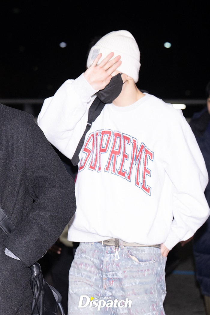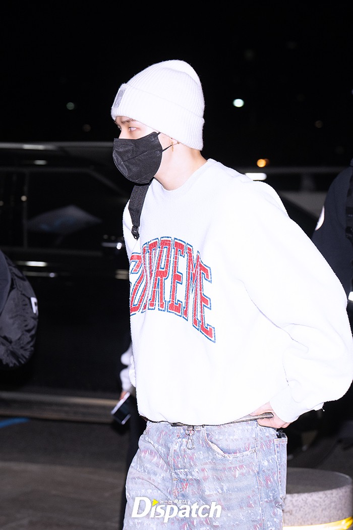 현진은 데님 팬츠에 맨투맨 셔츠로 댄디한 공항패션을 연출했다. 훈훈한 비주얼이 돋보였다.