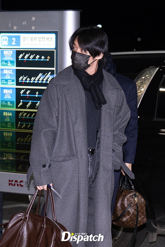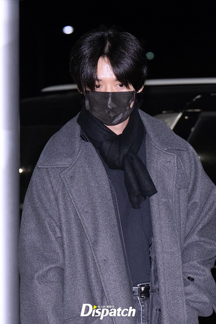 리노는 그레이 팬츠에 롱코트로 댄디한 공항패션을 연출했다. 훈훈한 비주얼이 돋보였다.