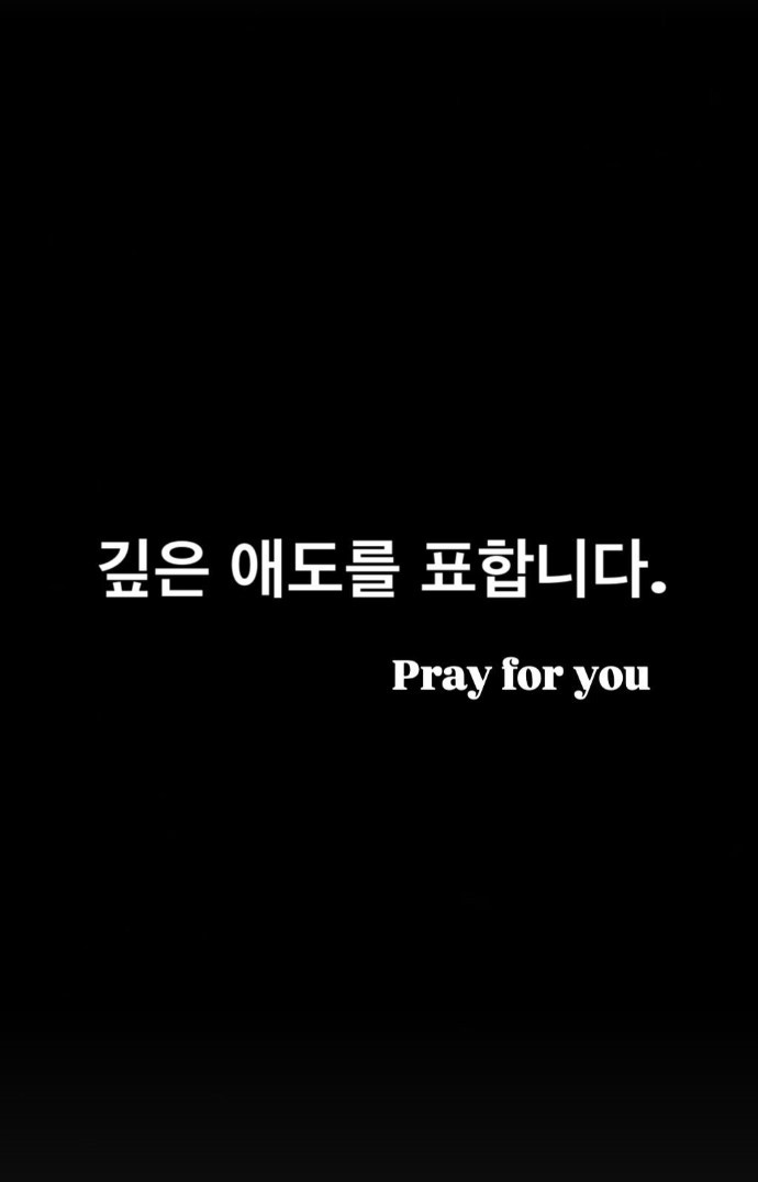 배우 정일우는 검은 바탕에 하얀 글씨로 "깊은 애도를 표한다"고 적었다. 영어로 "당신들을 위해 기도하겠다"(Pray for you)는 글을 남기기도 했다.