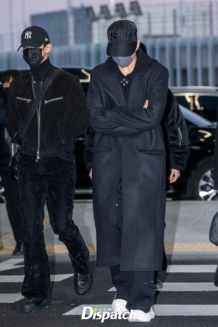 세븐틴은 무거운 분위기 속에서 조용히 출국장을 나섰다. 호시는 올블랙 의상으로 애도의 마음을 담았다.