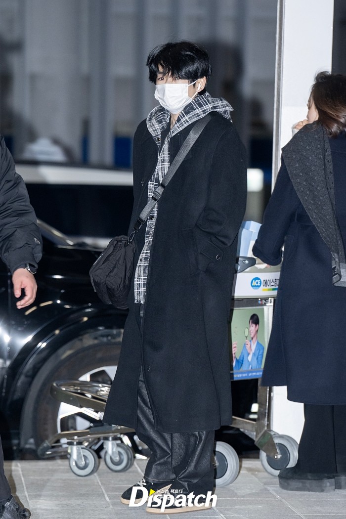 NCT WISH는 무거운 분위기 속에서 조용히 출국장을 나섰다. 유우시는 체크 셔츠와 블랙 코트를 착용했다.