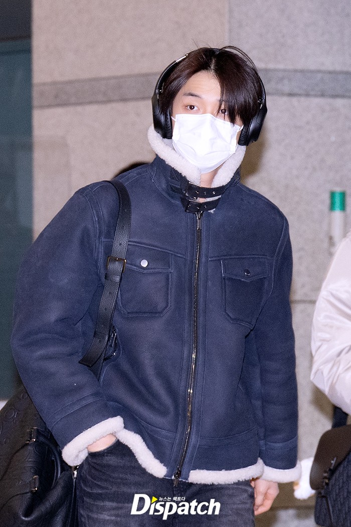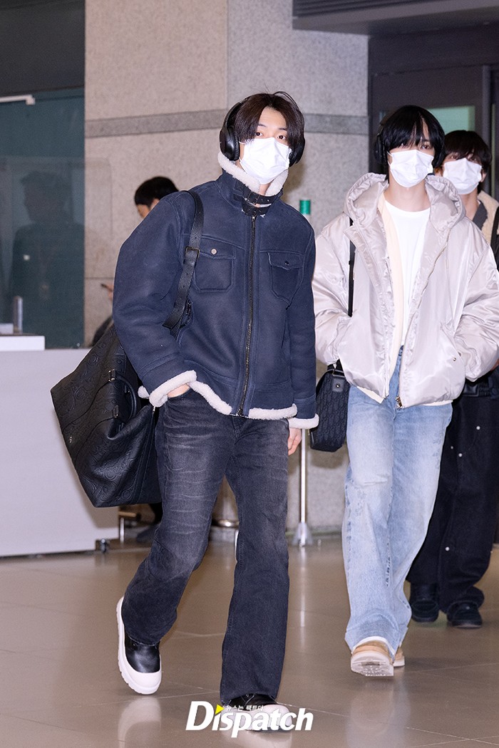 연준은 데님 팬츠에 무스탕 재킷으로 시크한 공항패션을 연출했다. 훈훈한 비주얼이 돋보였다.