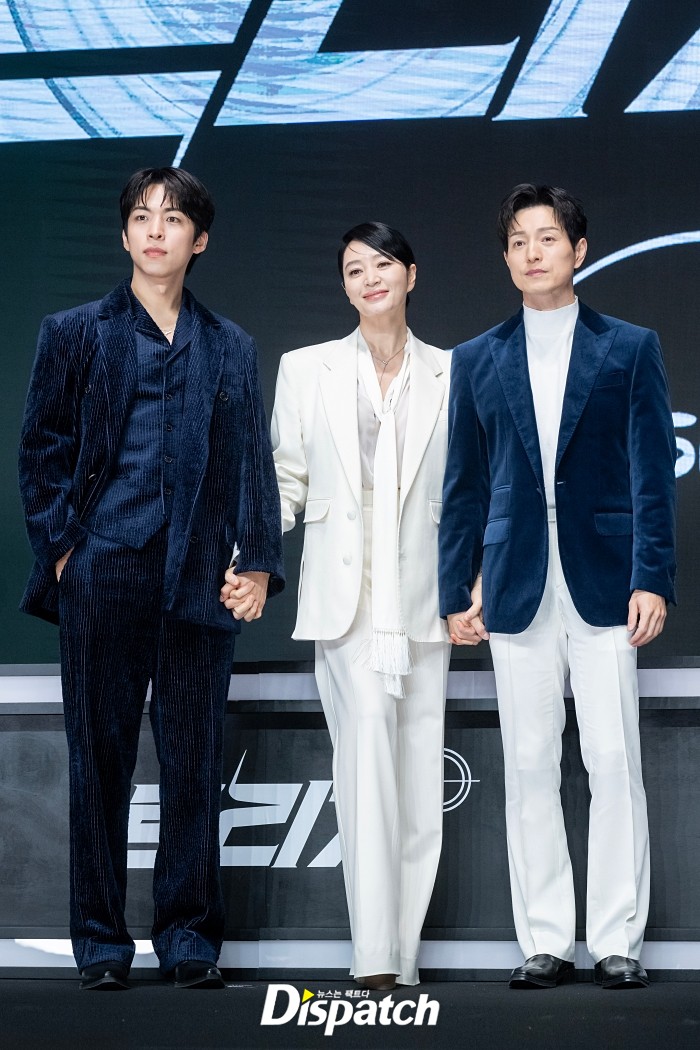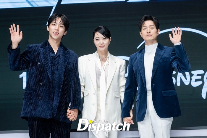[Dispatch=송효진기자] 디즈니+ 새 오리지널시리즈 '트리거' 제작발표회가 8일 오전 서울 영등포구 여의도 콘래드서울 그랜드볼룸에서 열렸다.