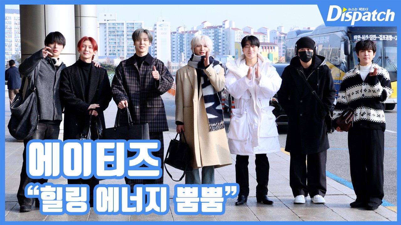 '에이티즈(ATEEZ)' 민기, 여상, 윤호, 성화, 산, 종호, 홍중이 새해 첫 출국길에 힘찬 새해 인사를 건넸다.