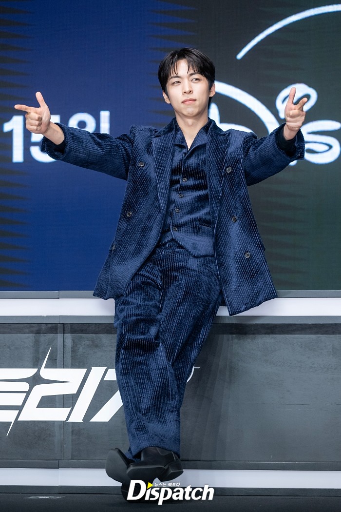 주종혁은 블루 코듀로이 수트로 멋을 냈다. 막내다운 통통튀는 포즈로 시선을 사로잡았다.
