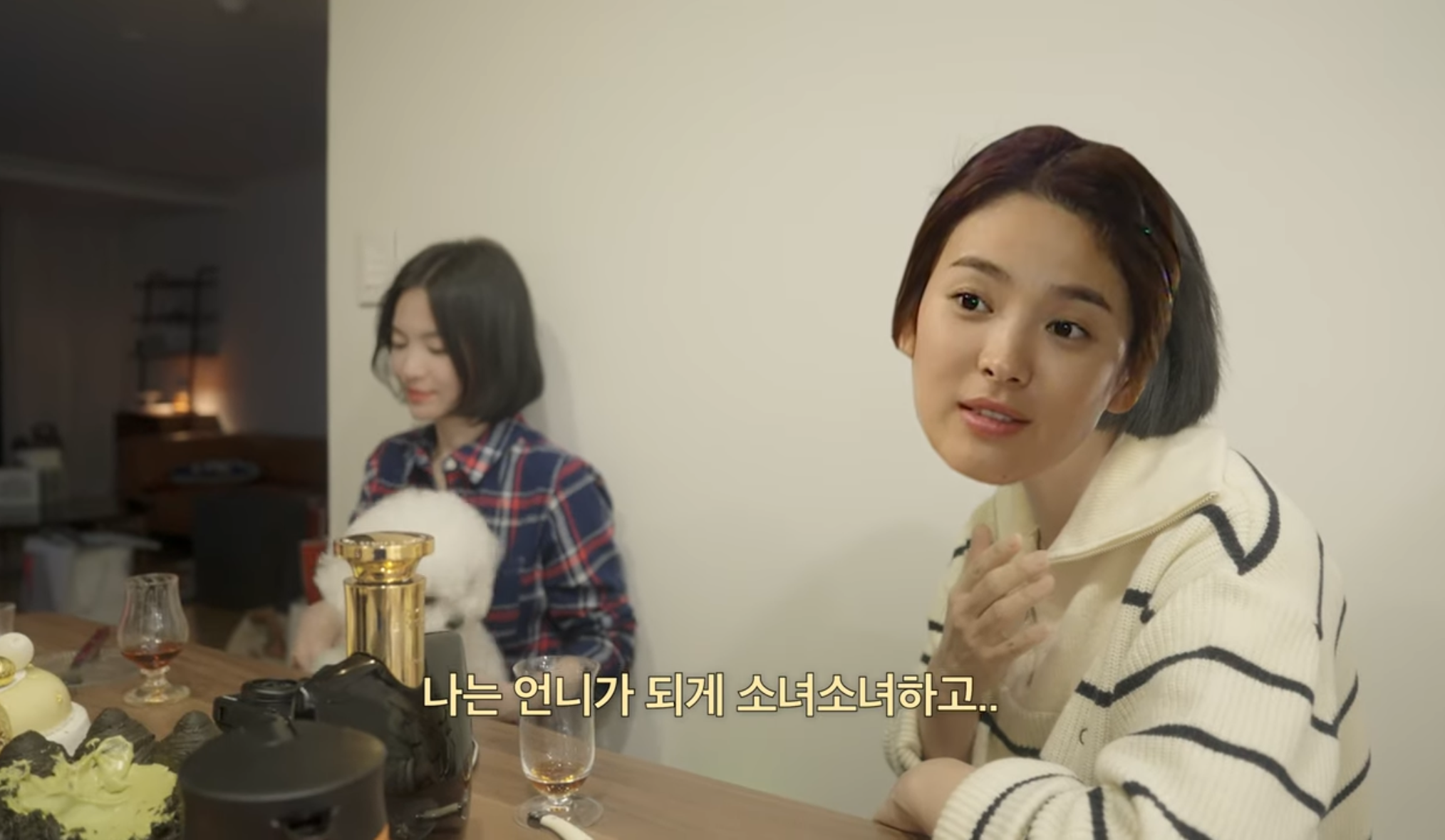 송혜교는 지난 10일 '다비치'의 유튜브 채널 '걍민경'에 '나 말고 송혜교 브이로그….'라는 제목으로 깜짝 등장했다. 영화 '검은 수녀들' 홍보 일환으로 브이로그 촬영에 나섰다.