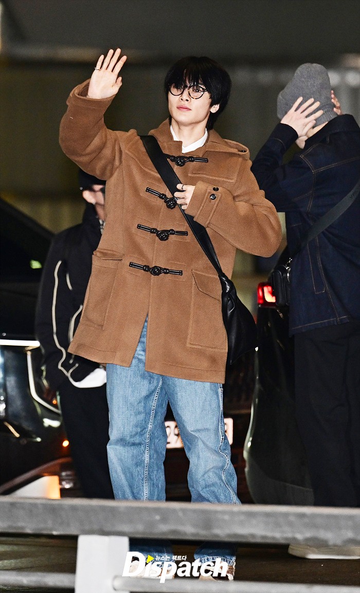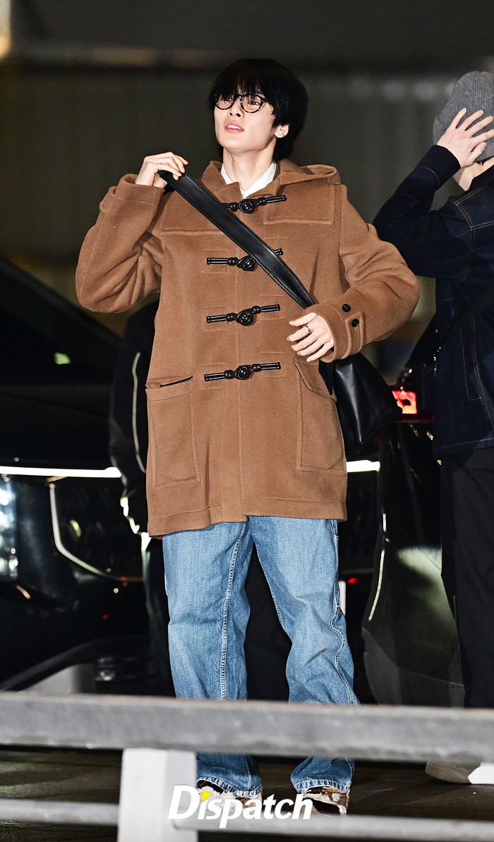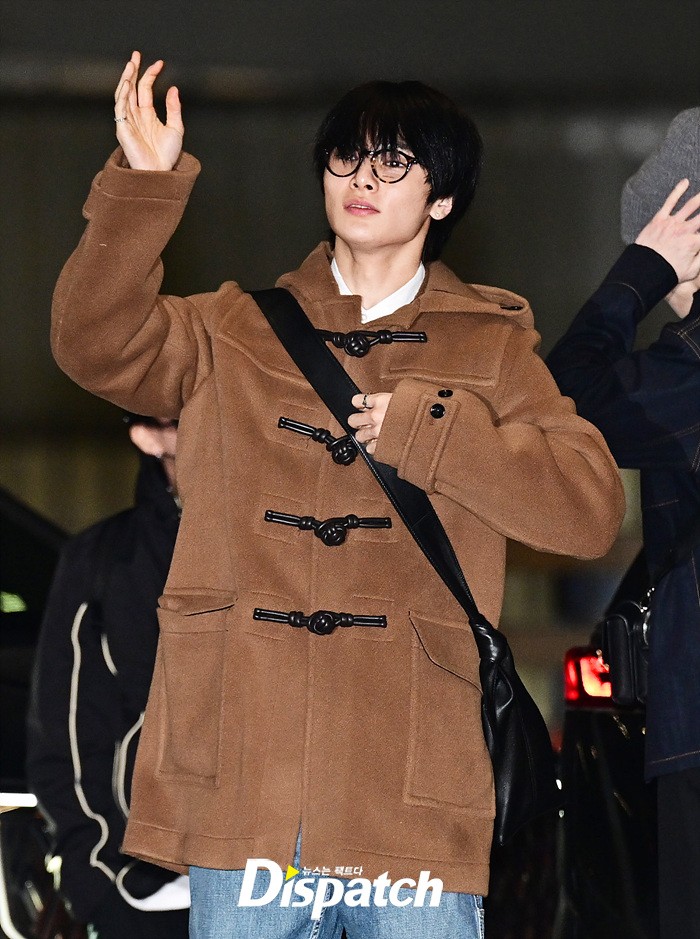 아이엔은 브라운 컬러의 코트와 데님진으로 캐주얼한 공항패션을 연출했다. 이른 아침에도 팬들을 향해 환한 손인사로 화답했다.