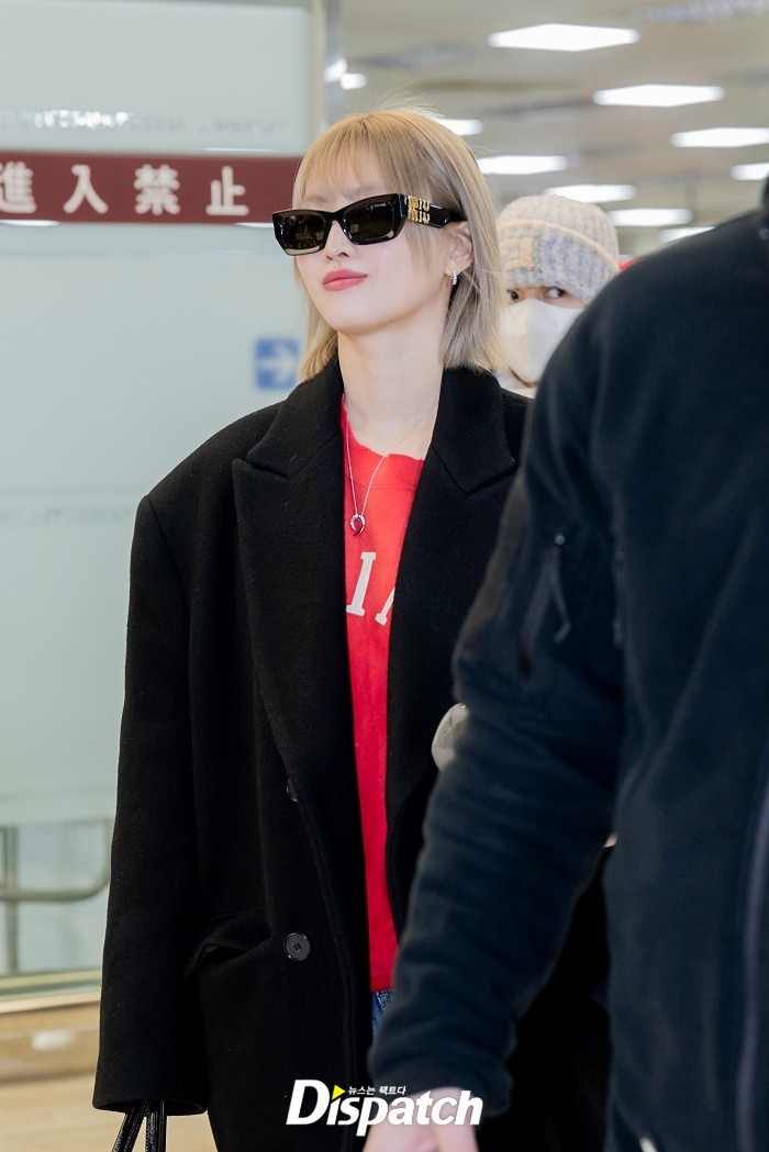 모모는 블랙 롱코트와 선글라스로 공항패션을 완성했다. 남다른 카리스마가 돋보였다.
