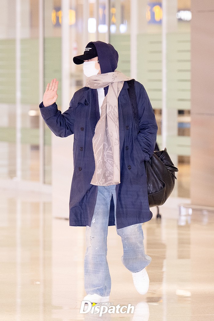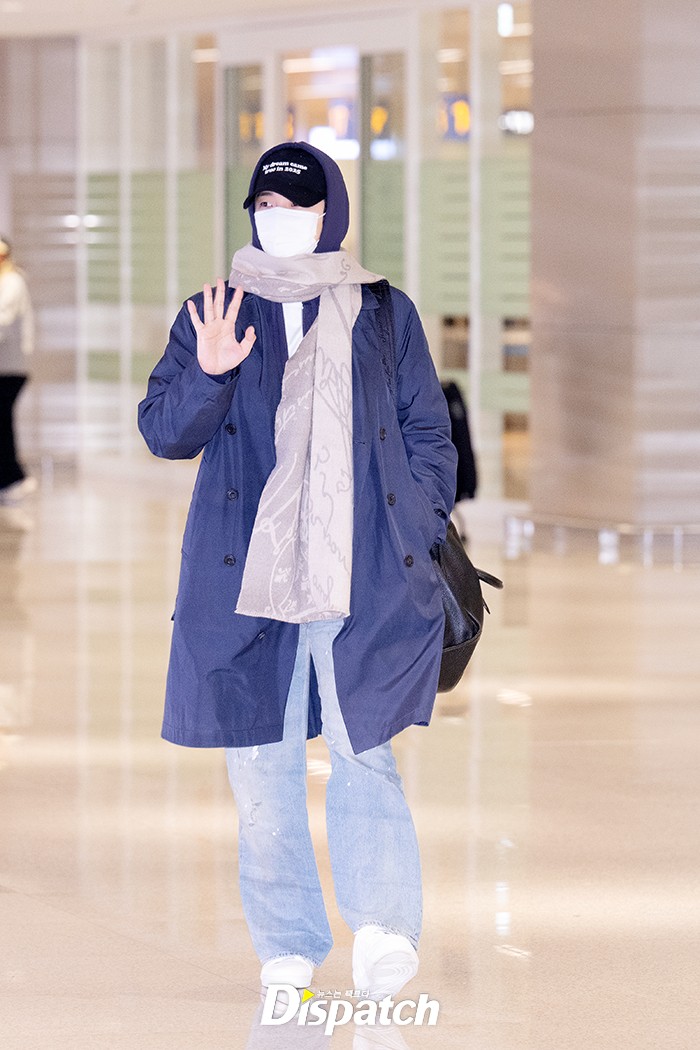 이준호는 데님 팬츠에 롱코트로 댄디한 공항패션을 연출했다. 우월한 비주얼이 돋보였다.