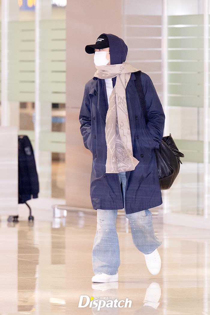 이준호는 데님 팬츠에 롱코트로 댄디한 공항패션을 연출했다. 우월한 비주얼이 돋보였다.