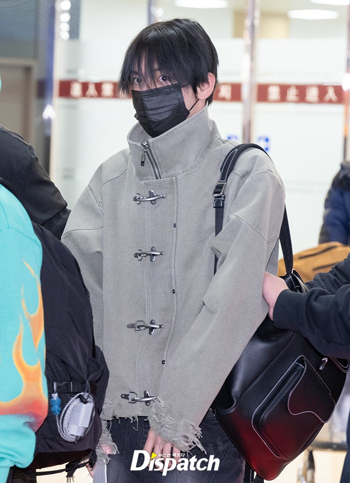 한유진은 빈티지 스타일 자켓으로 멋을 냈다. 공항에 몰린 팬들을 향한 팬서비스도 잊지 않았다.