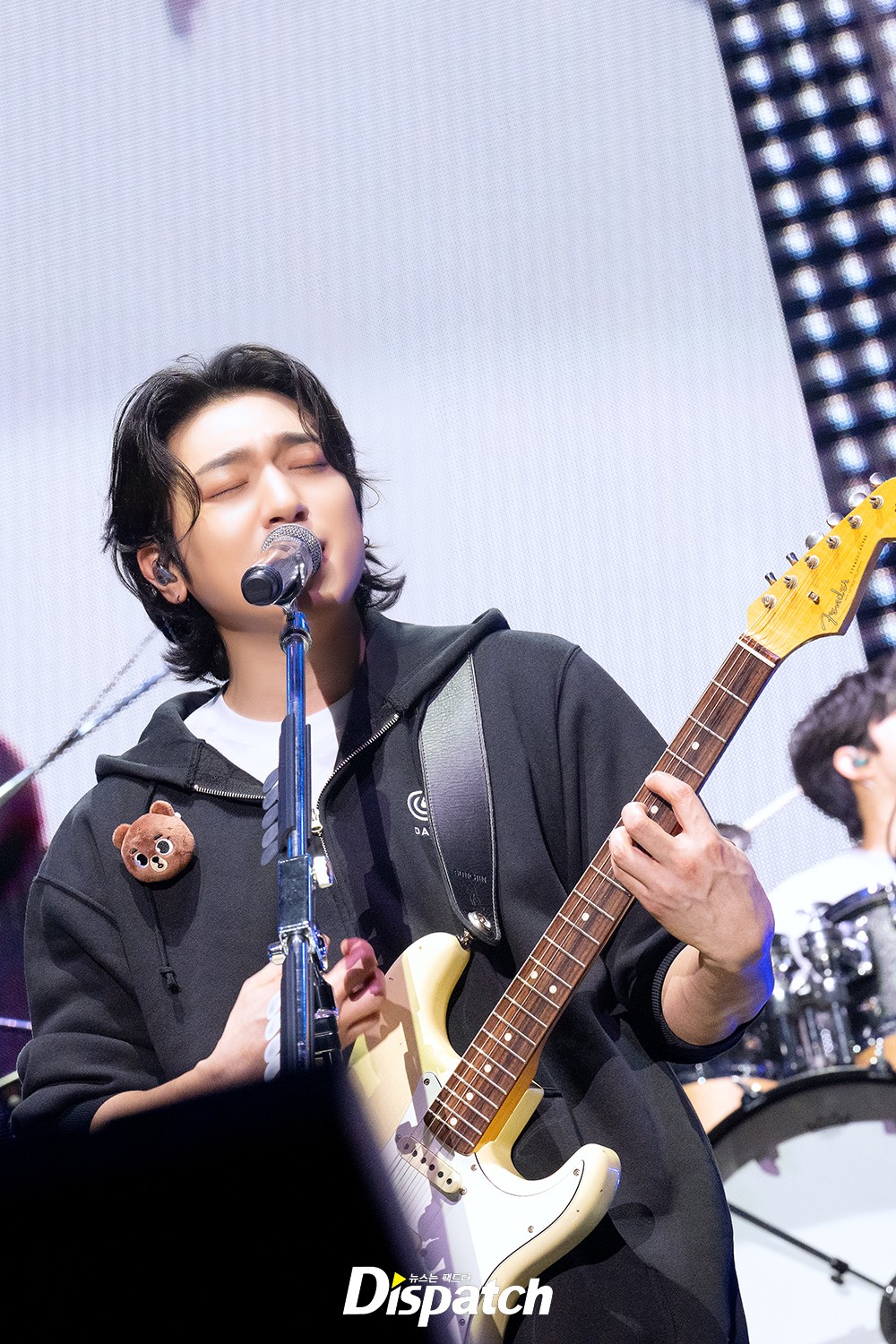 ‘어떻게 말해', '아 왜', '러브 미 오어 리브 미', '슛 미’로 연달아 도파민을 터트렸다. ‘슛 미’ 후반부, 솔로 연주를 선보였다. 영케이는 기타를 들어 올리며 반응을 유도했다. 강렬한 분위기를 완성했다.