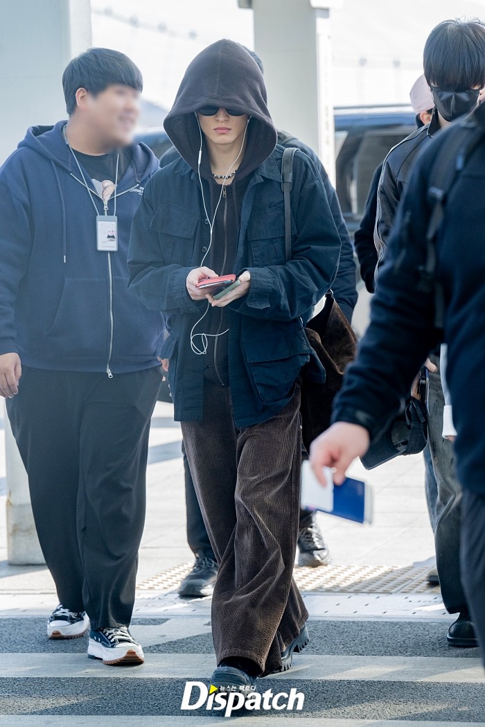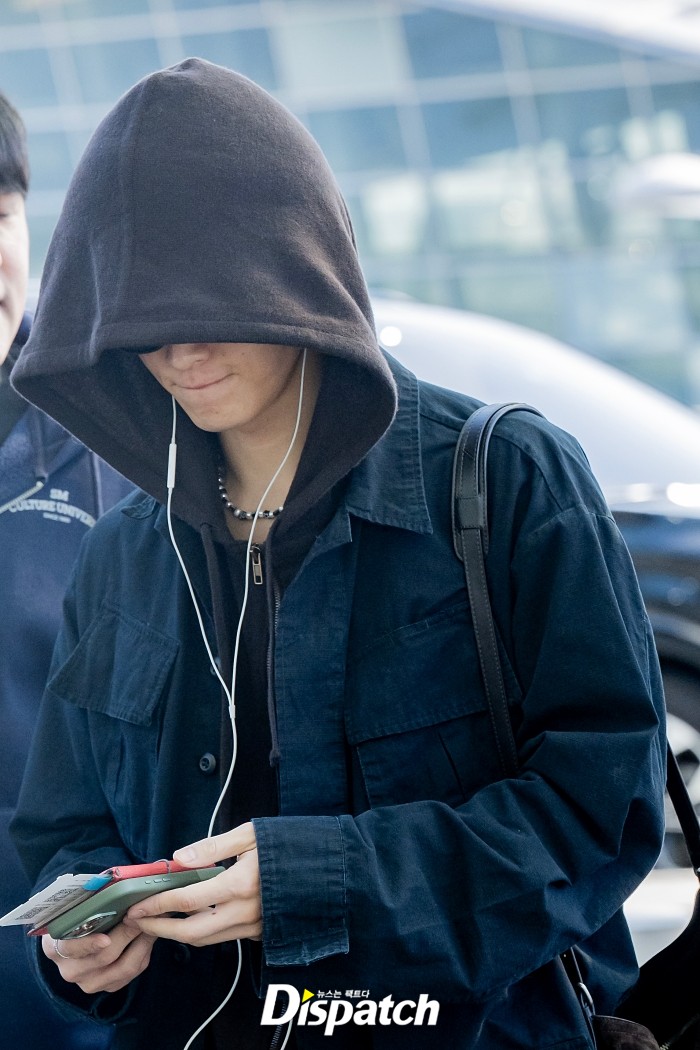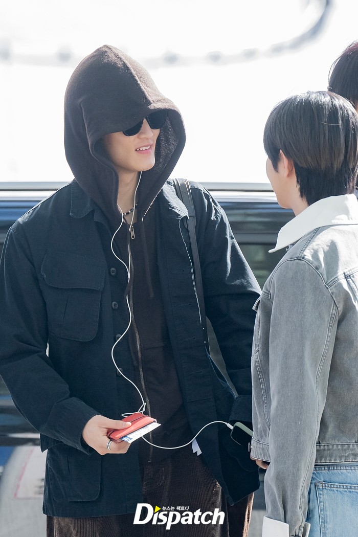 마크는 집업 후드와 재킷으로 공항패션을 완성했다. 잘생긴 비주얼이 돋보였다.