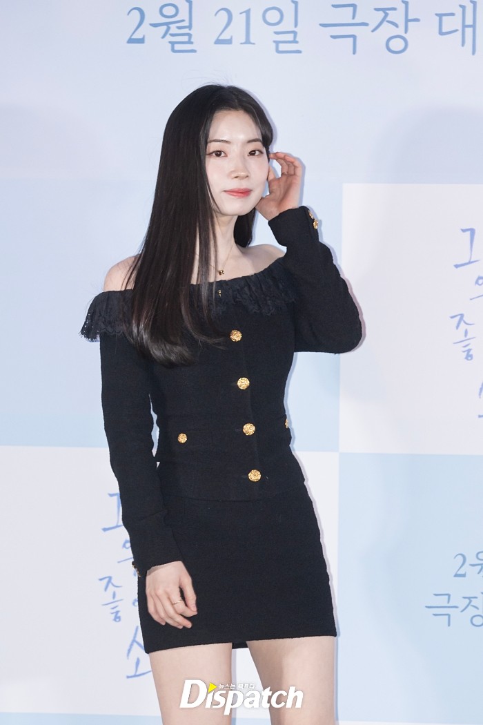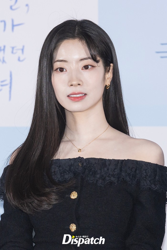 다현은 블랙 오프숄더 의상으로 가녀린 몸매를 뽐냈다. 길게 늘어뜨린 생머리가 청순미를 더했다.