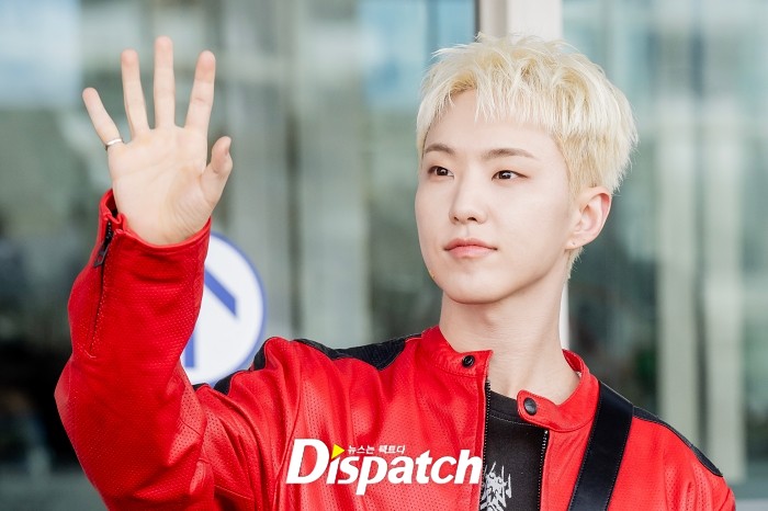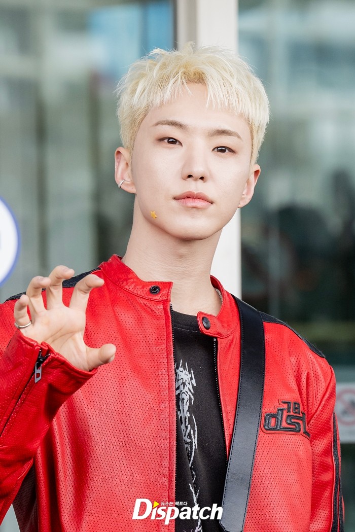 호시는 레더 재킷과 데님 팬츠로 멋을 냈다. 마중 온 팬들에게 환한 미소와 하트로 팬서비스를 펼쳤다.