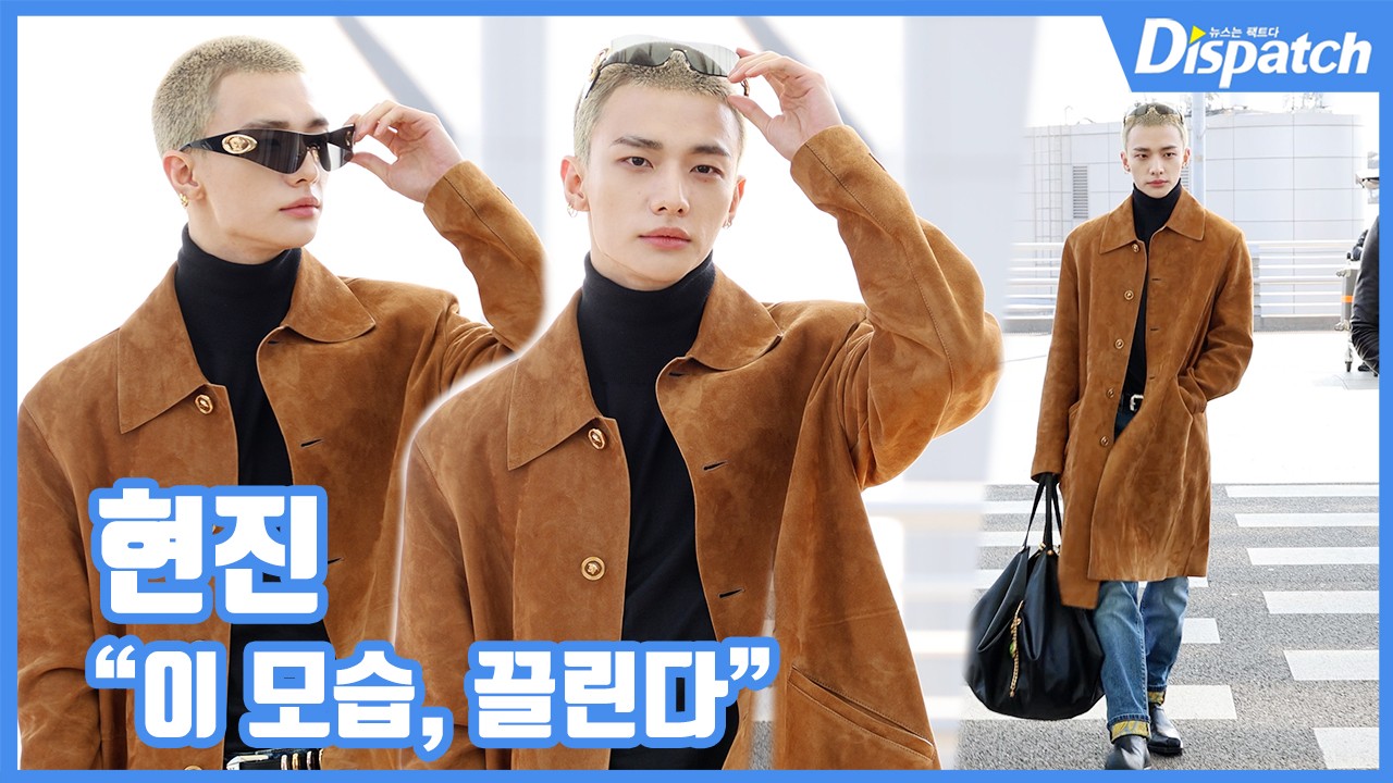 이날 현진은 블랙 터틀넥에 브라운 스웨이드 재킷을 매치해 럭셔리한 자태를 뽐냈다. 또한, 선글라스를 머리 위에 쓰며 섹시미를 더했다.