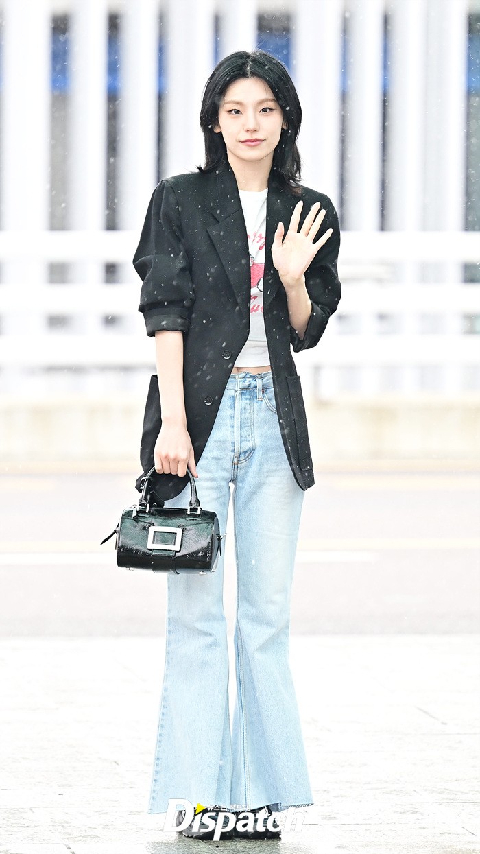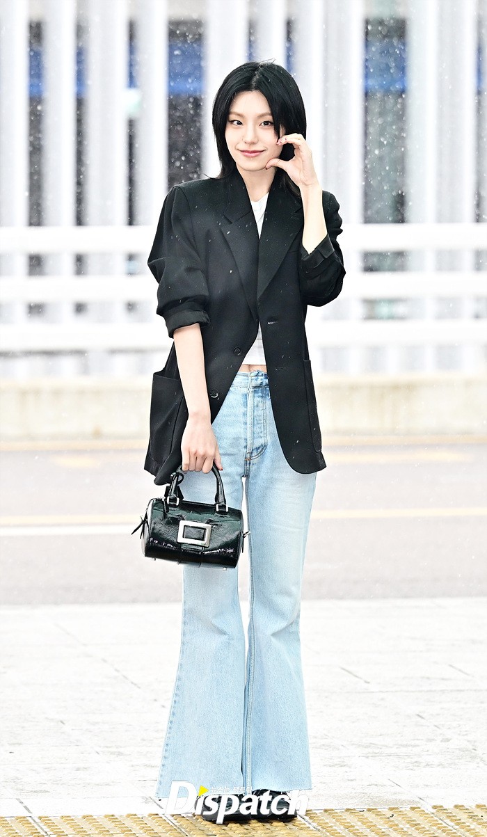 예지는 블랙 재킷과 데님진으로 산뜻한 공항패션을 완성했다. 함박눈에도 해맑은 미소로 출국장을 나섰다.