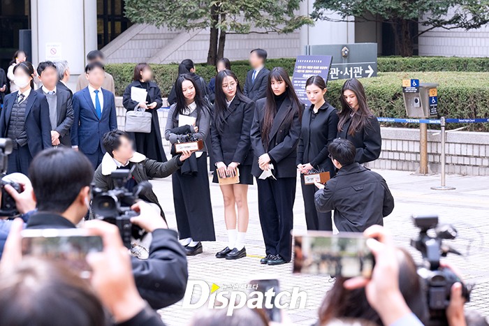 이날 '뉴진스'(NJZ) 멤버들은 직접 중앙지법에 참석했다. 검은 옷차림으로 법정으로 들어섰다. 약 2시간에 걸친 공판을 마친 뒤 법원을 빠져나갔다.