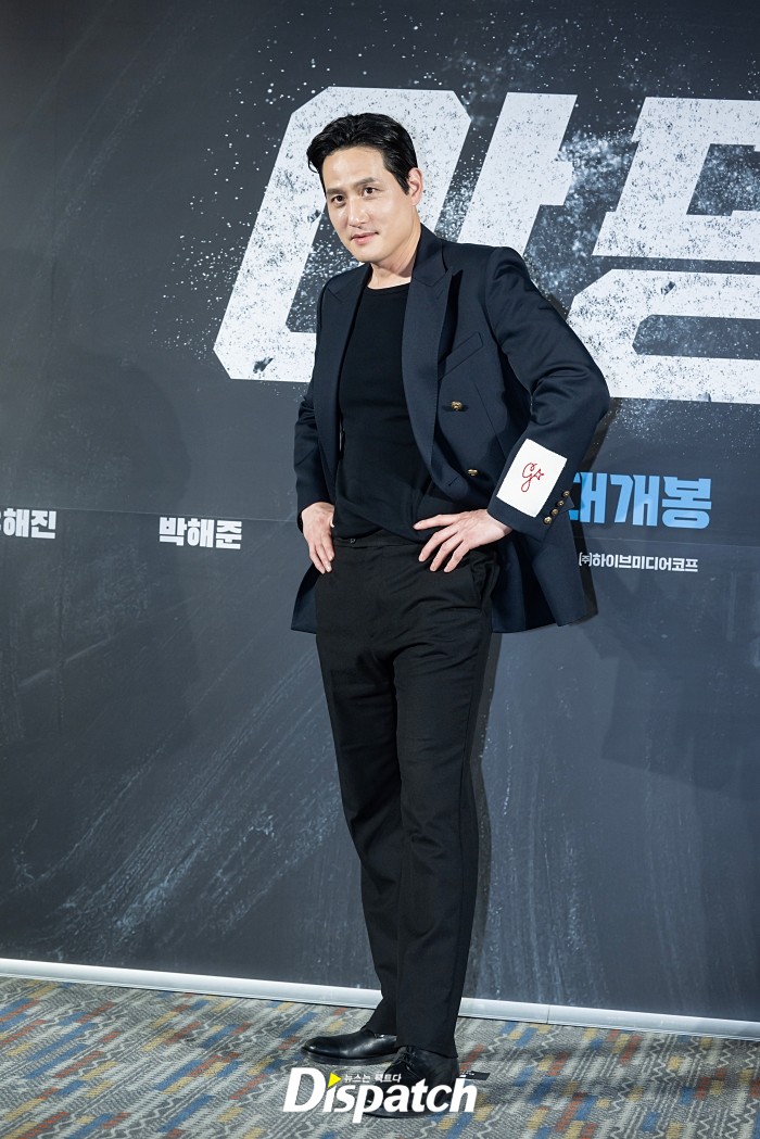박해준은 올블랙룩으로 멋을 냈다. 남다른 피지컬이 시선을 사로잡았다.