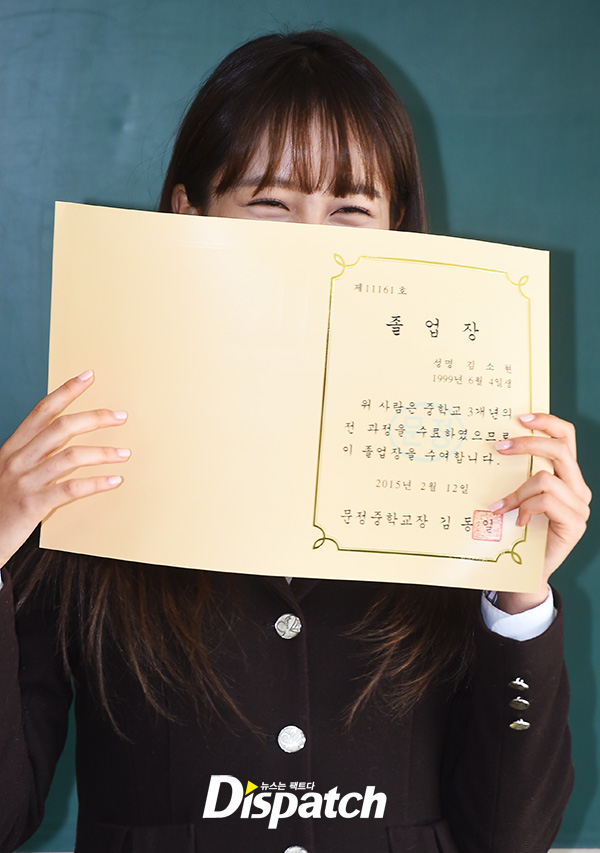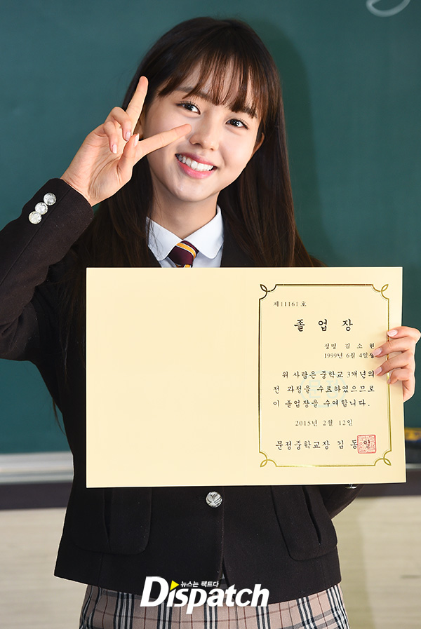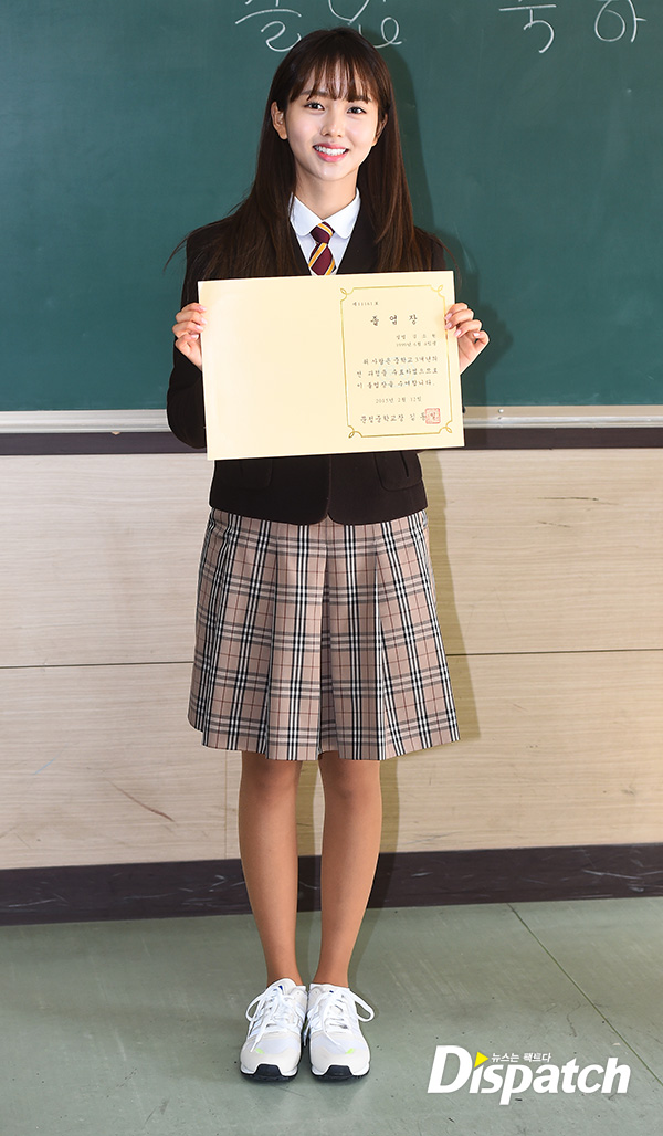 이날 학교를 찾은 김소현은 우월한 미모가 돋보였다. 오랜만에 교복을 입고 청순한 자태를 뽐냈다
