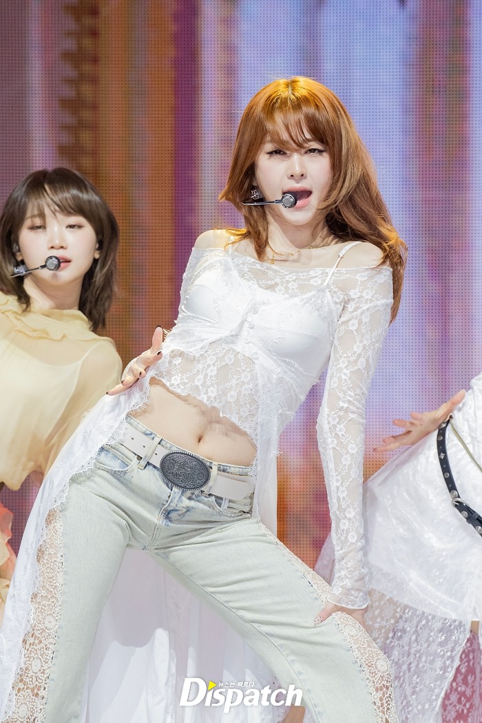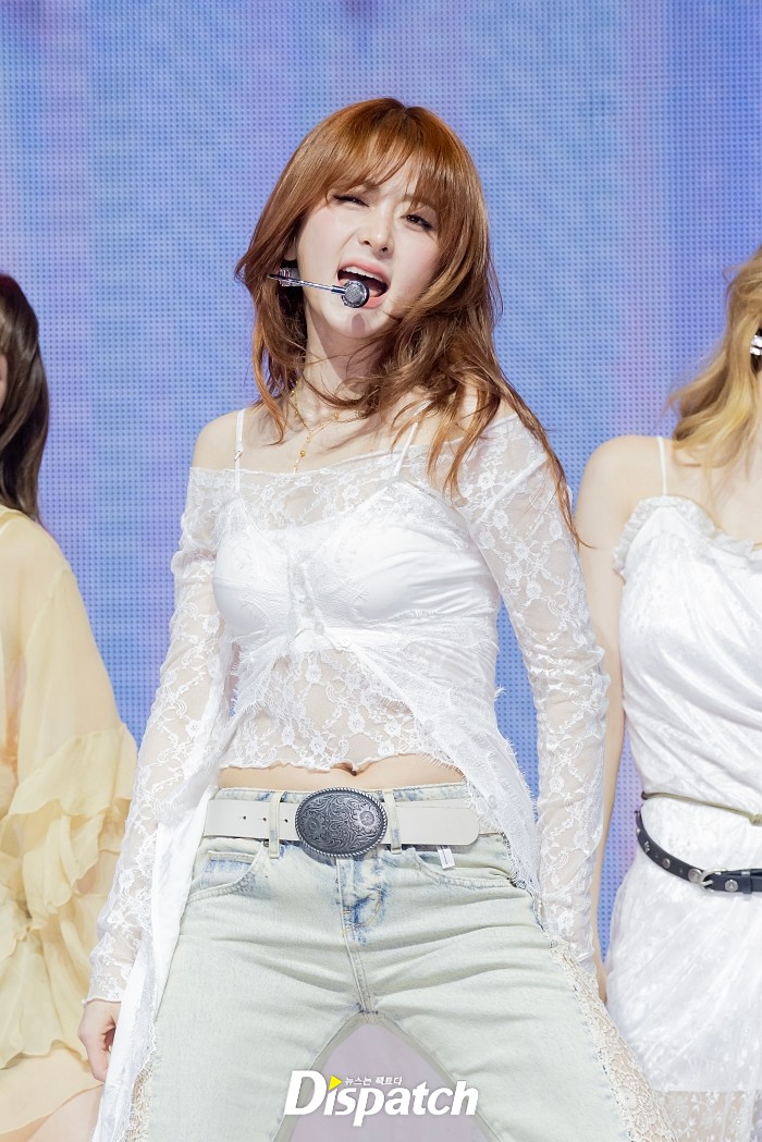 르세라핌은 보헤미안 스타일링으로 여성미를 드러냈다. 허윤진은 어깨를 드러내는 시스루 의상과 레이어드컷으로 사랑스러움을 더했다.