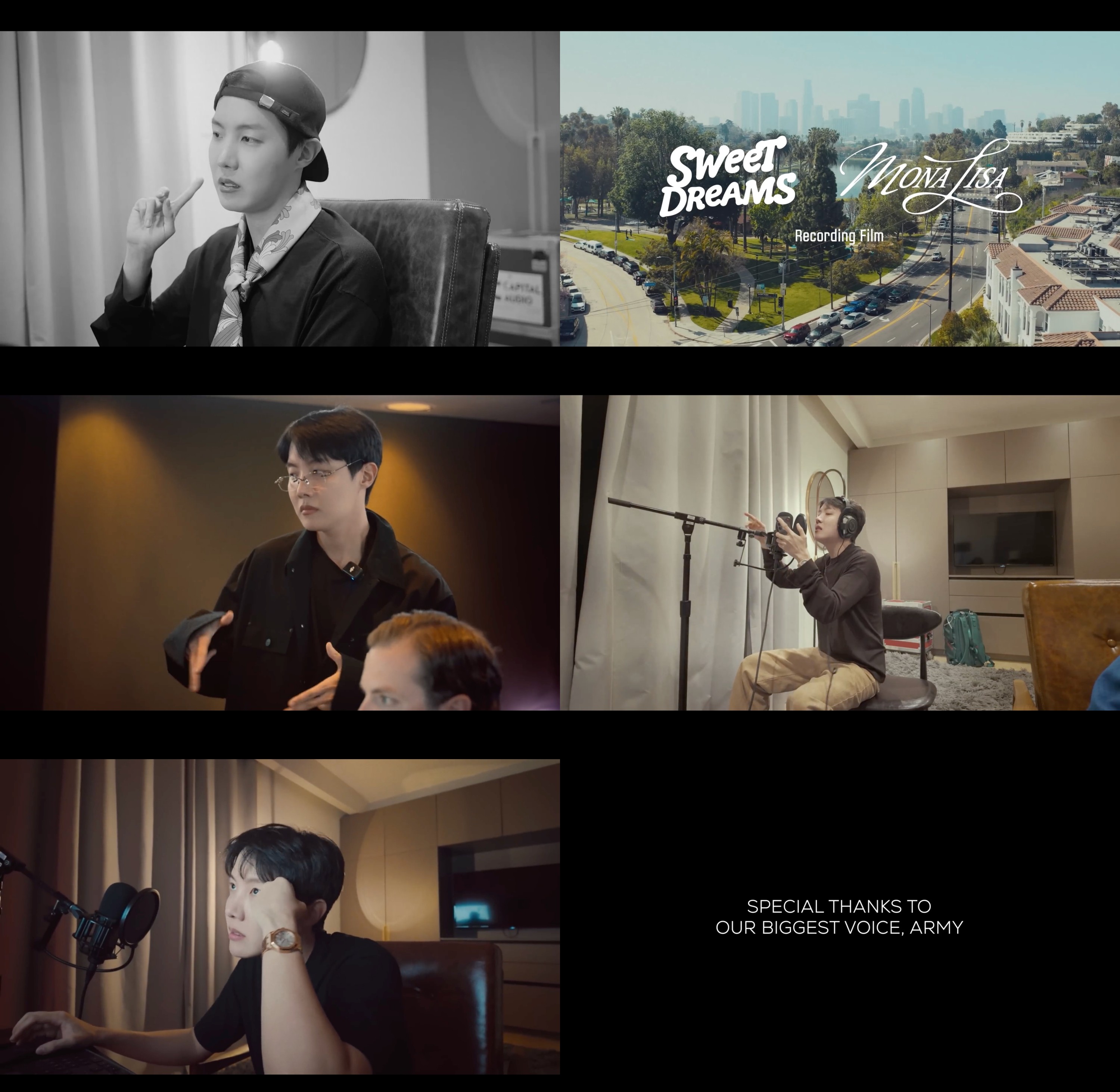 제이홉은 지난 21일 오후 9시 방탄소년단 유튜브 채널에서 디지털 싱글 '스위트 드림즈'와 '모나리자' 녹음 비하인드 영상을 공개했다. "대중들이 즐기는 음악을 해보자는 마음으로 미국으로 떠났다"고 전했다.