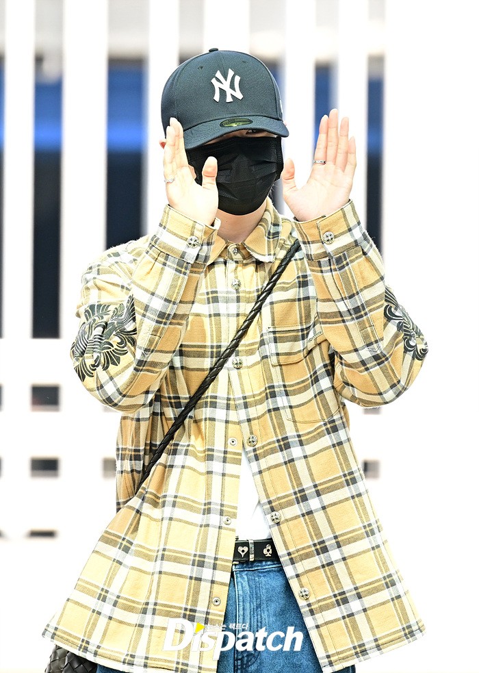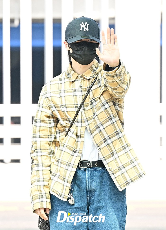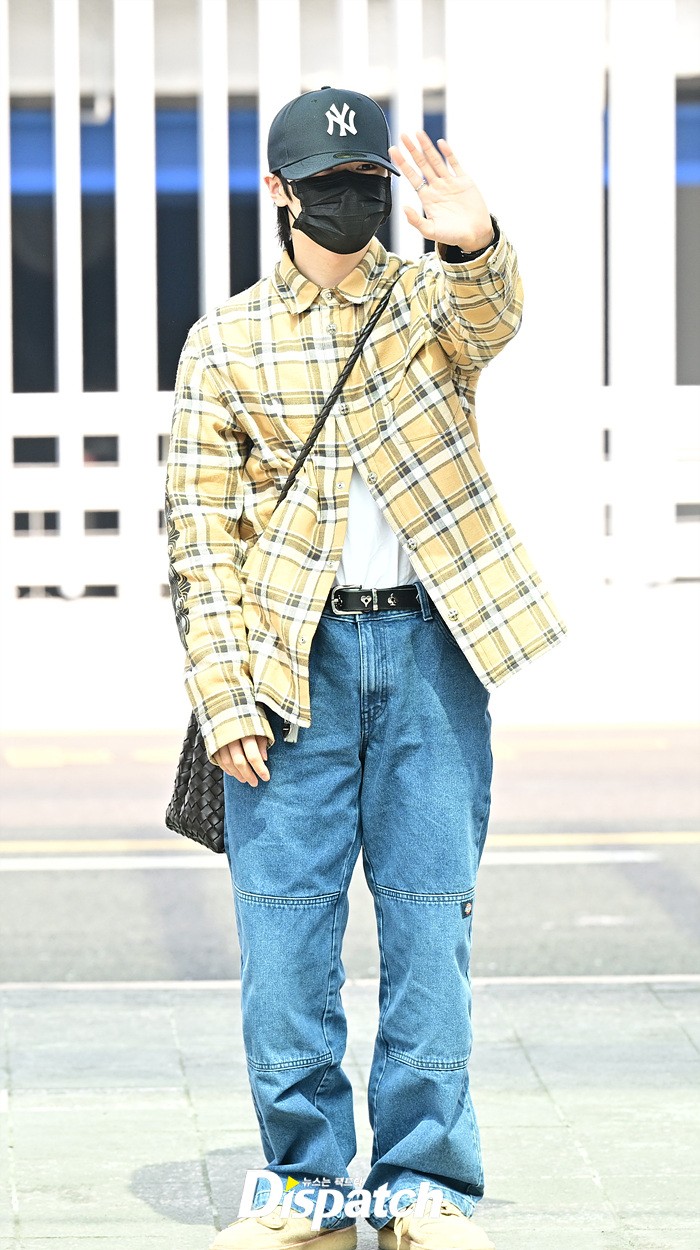 아이엔은 공항에 모인 팬들을 위해 손인사로 화답했다. 체크무늬 셔츠와 데님진으로 연출한 캐주얼한 공항패션도 돋보였다.