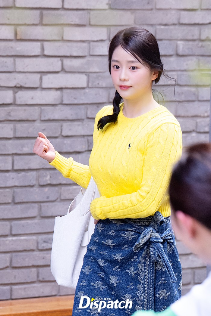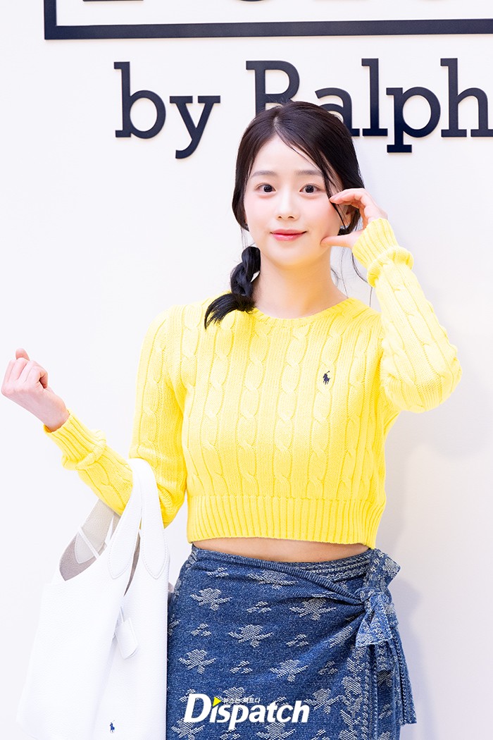 배우 채서안은 데님 스커트에 옐로우 니트로 러블리한 패션을 연출했다. 깜찍한 비주얼이 돋보였다.