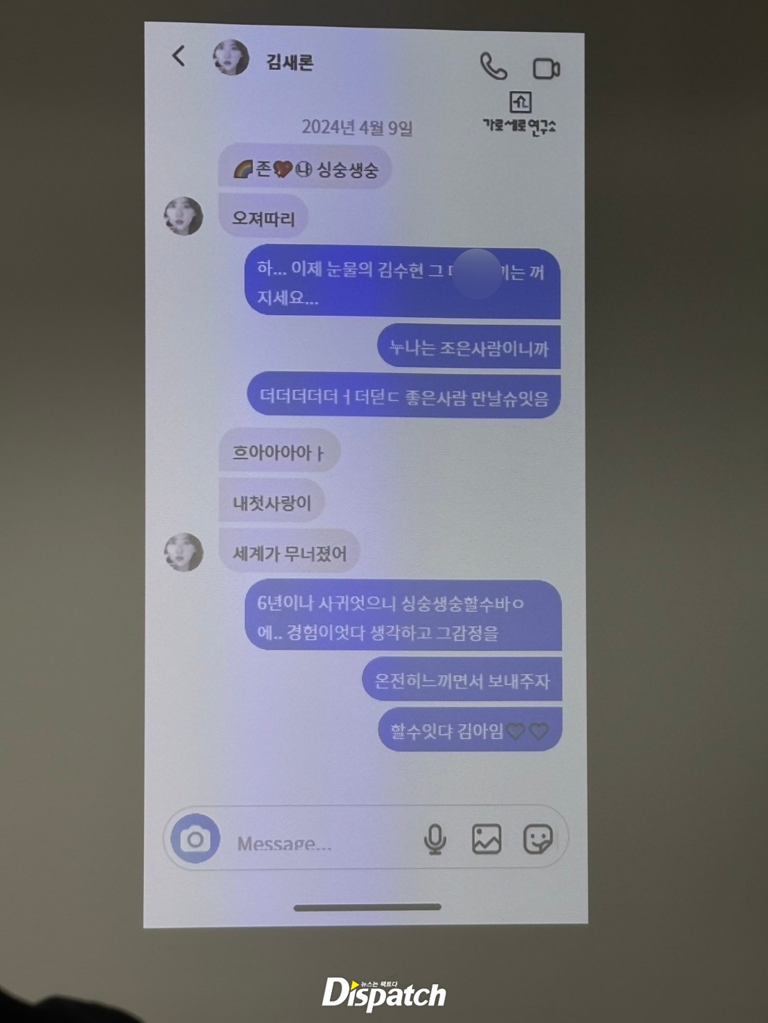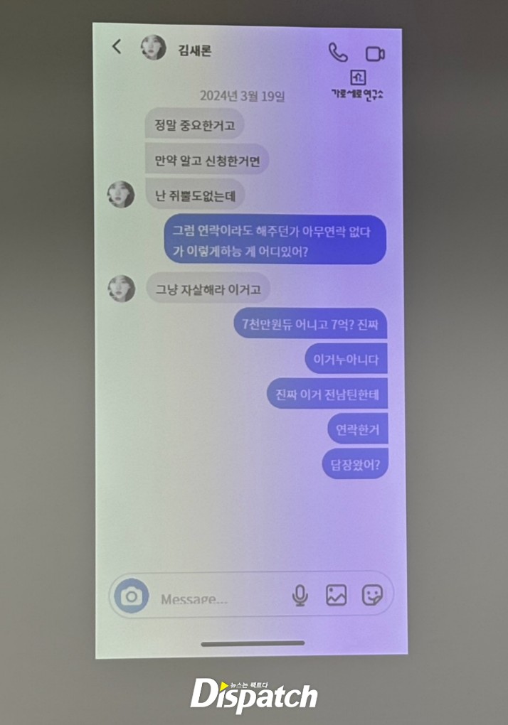 [Dispatch=김소정기자] 故 김새론 유족이 지난 2016년 김수현과 김새론이 나눈 메시지를 공개했다. 당시 김새론의 나이는 17세였다.