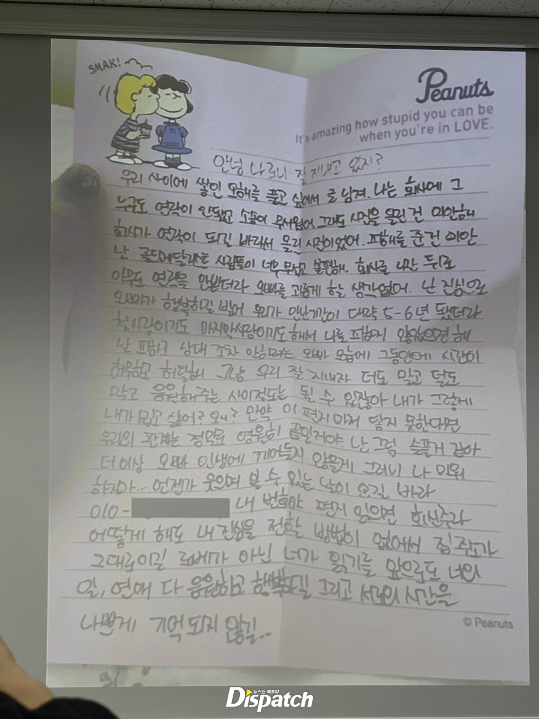 "안녕 나 로니. 잘 지내고 있지? 우리 사이에 쌓인 오해를 풀고 싶어서 글 남겨. 나는 회사에 그 누구도 연락이 안 되고 소송이 무서웠어. 그래도 사진을 올린 건 미안해. 회사가 연락이 되길 바래서 올린 사진이었어. 피해를 준 건 미안." (김새론 편지)