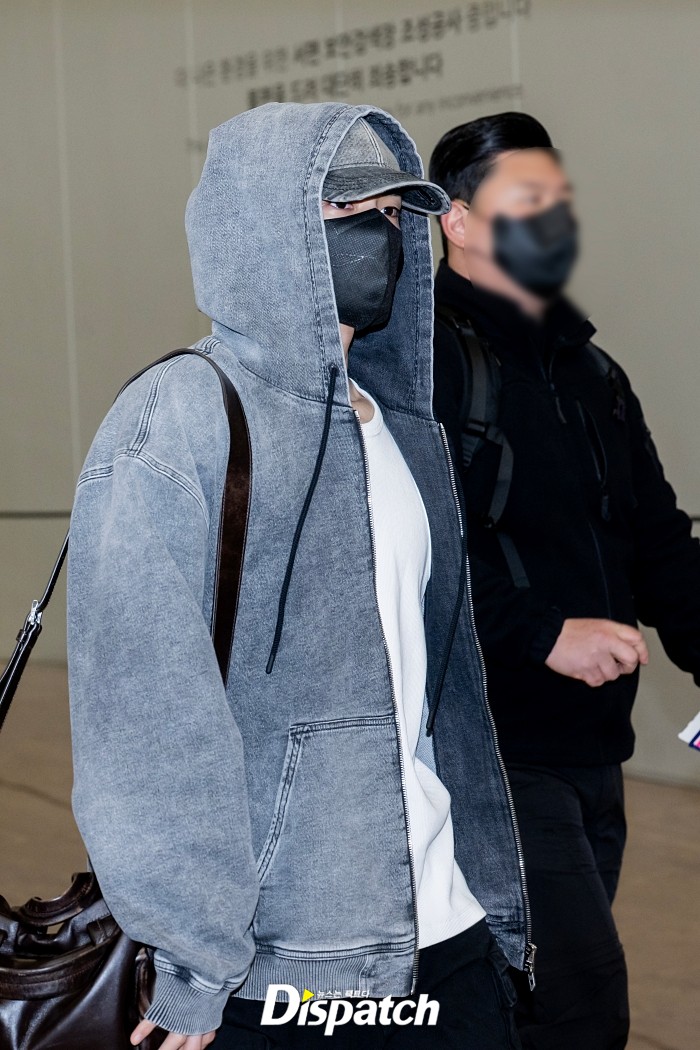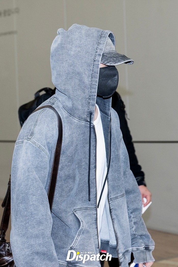 제노는 데님 후드 재킷과 볼캡으로 멋을 냈다.