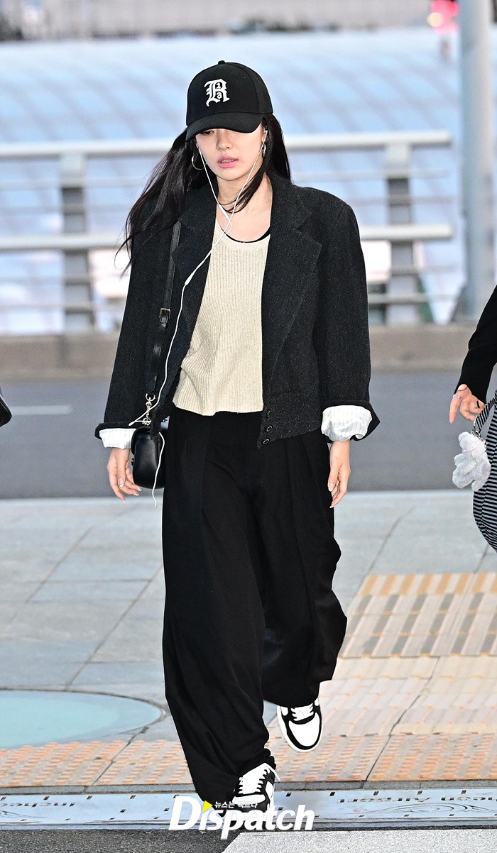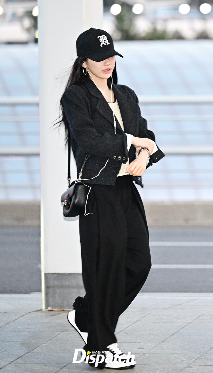 닝닝은 인형같은 이목구비로 시선을 모았다. 깊게 눌러 쓴 모자에도 예쁜 외모가 눈길을 끌었다.