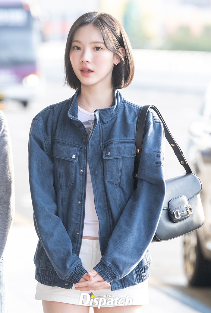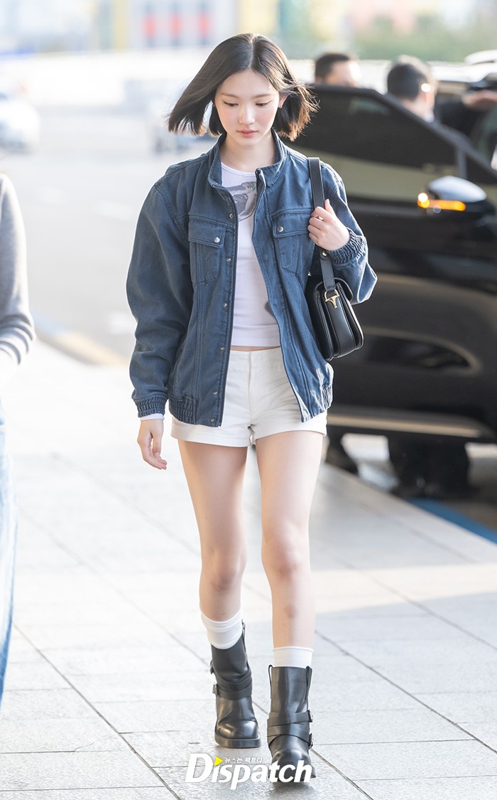 지유는 숏팬츠와 부츠로 공항패션을 완성했다. 매력 넘치는 단발머리로 남심을 자극했다.