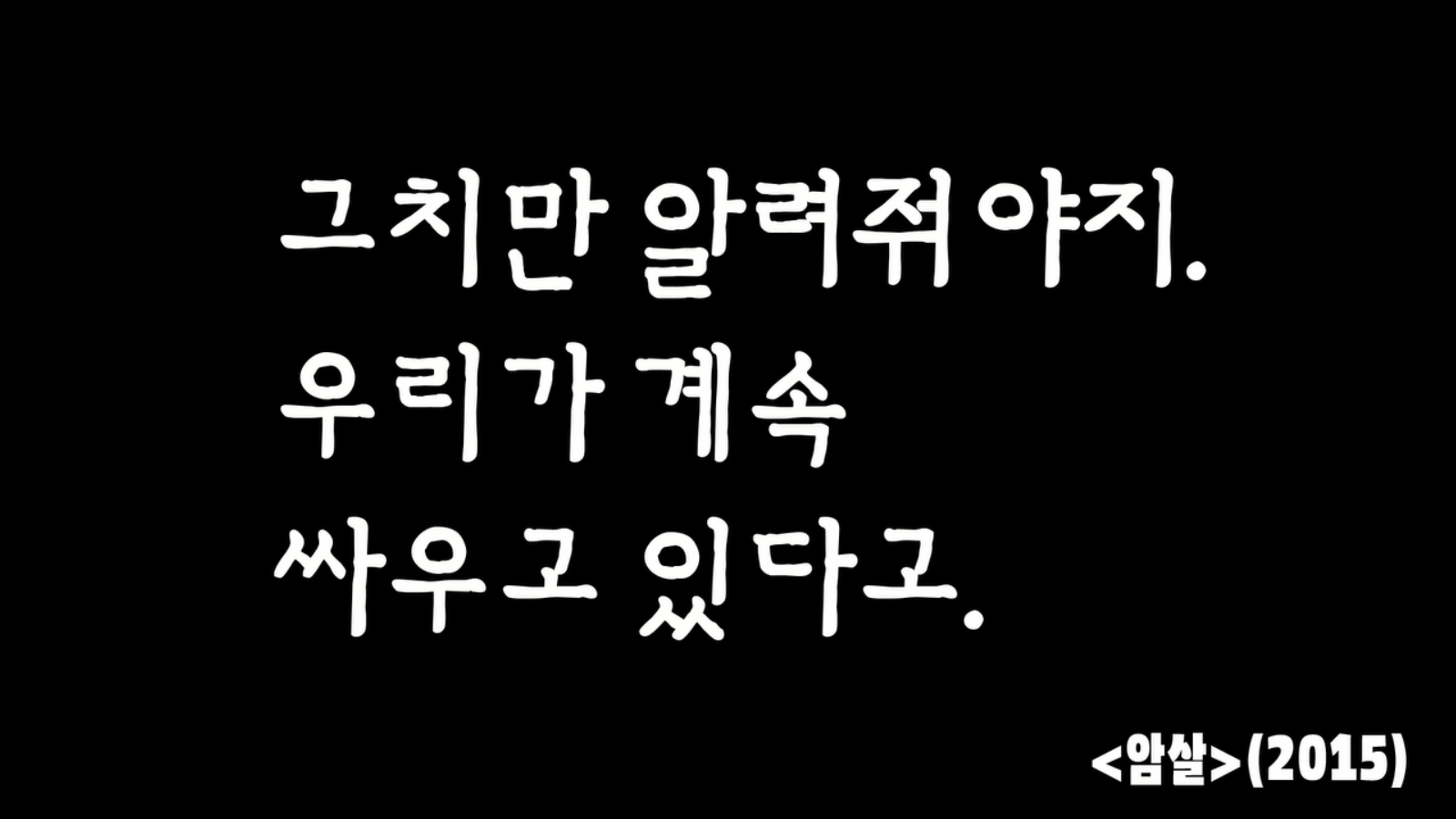 '암살'(2015)에선 독립군의 명대사인 "그치만 알려줘야지. 우리가 계속 싸우고 있다고"라는 대사가 나왔다.