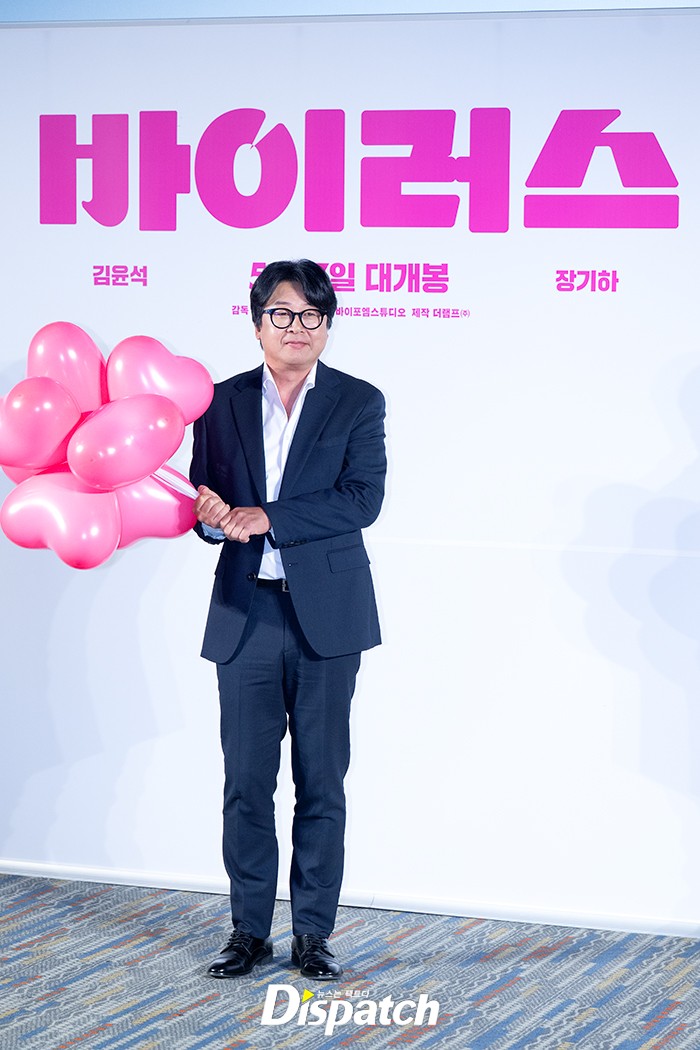 김윤석은 블랙 수트로 중후한 매력을 뽐냈다. 재치 넘치는 포즈로 웃음을 자아냈다.