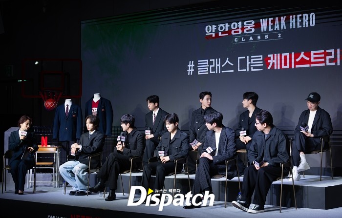 '약한영웅 클래스2' 측이 21일 서울 마포구 호텔 나루 서울 엠갤러리에서 제작발표회를 열었다. 박지훈, 려운, 최민영, 이준영, 유수빈, 배나라, 이민재, 유수민 감독, 한준희 기획총괄 등이 자리했다.