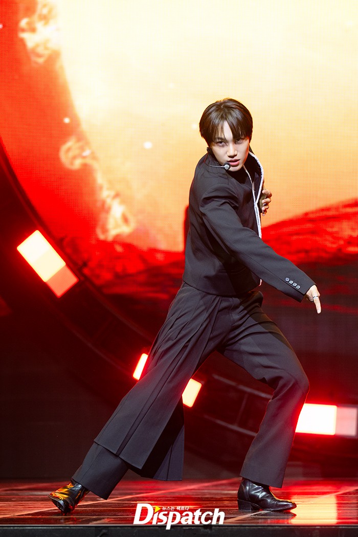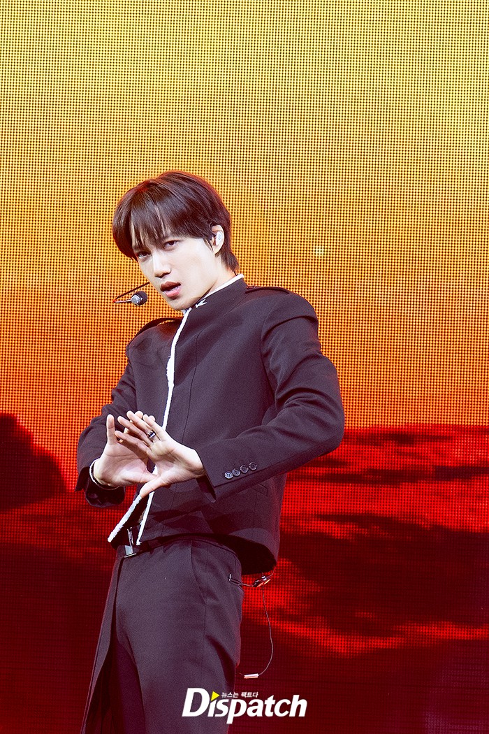 카이는 블랙 수트로 댄디한 매력을 뽐냈다. 조각같은 비주얼이 돋보였다.