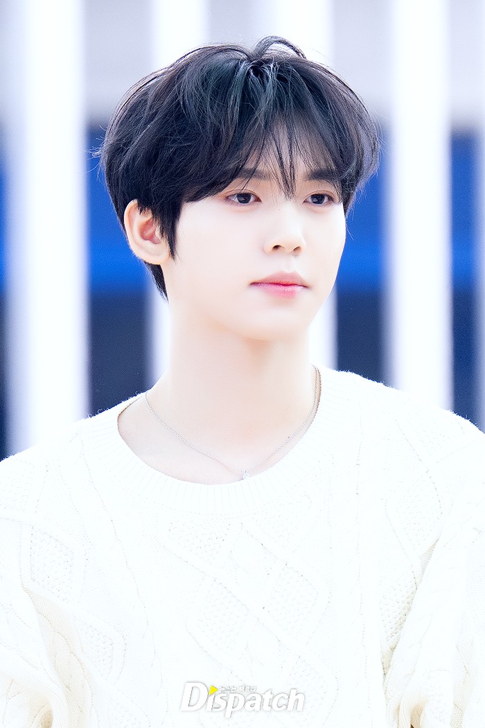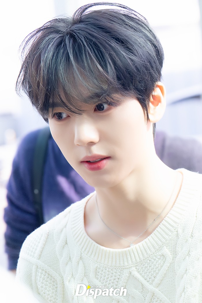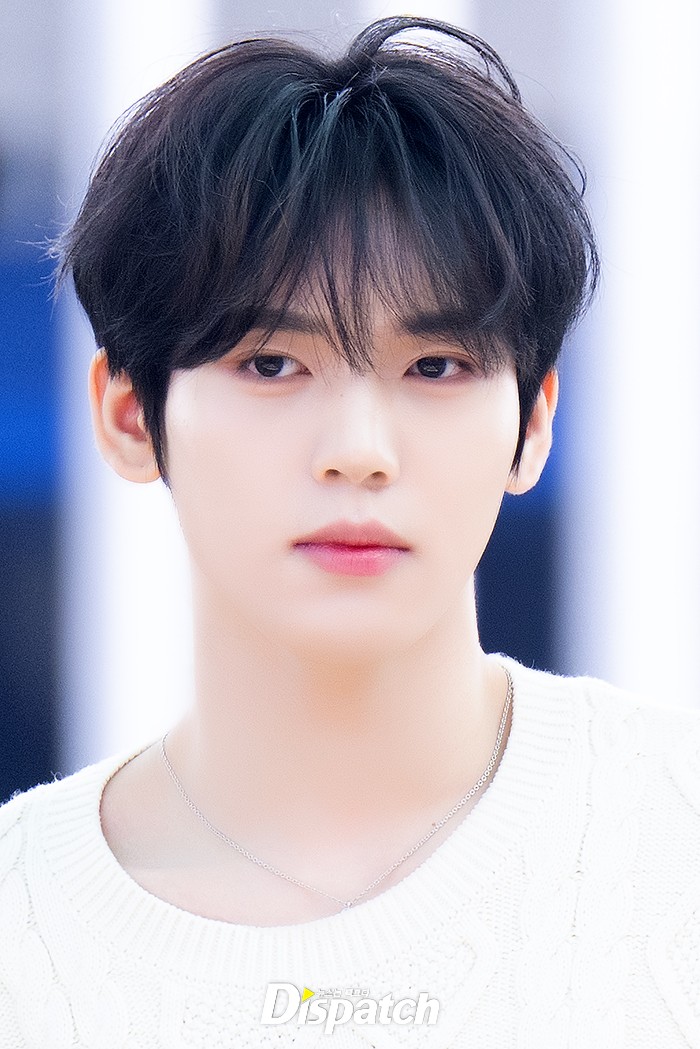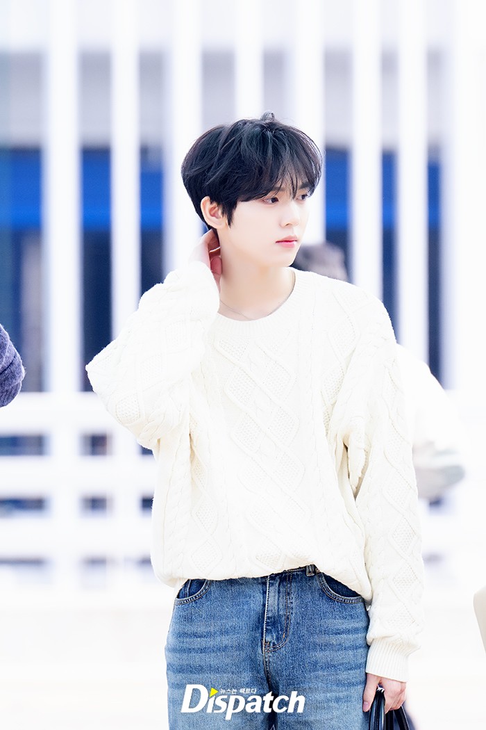 한유진은 데님 팬츠에 화이트 니트로 댄디한 공항패션을 연출했다. 조각같은 비주얼이 돋보였다.
