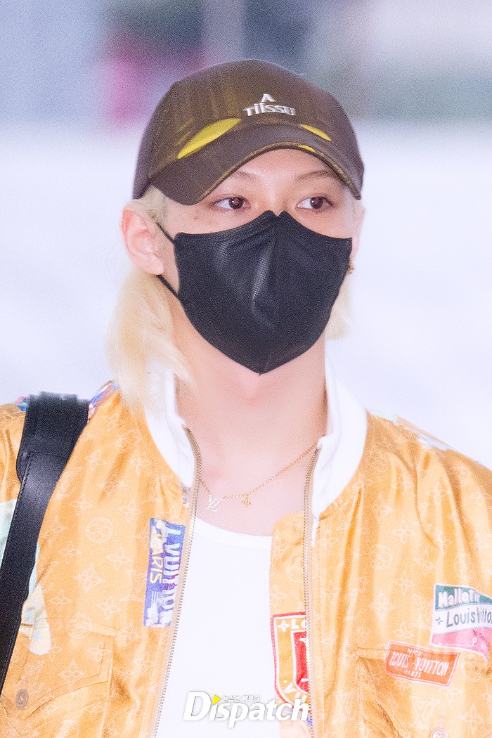 필릭스는 블랙 팬츠에 골드 재킷으로 시크한 공항패션을 연출했다. 훈훈한 비주얼이 돋보였다.