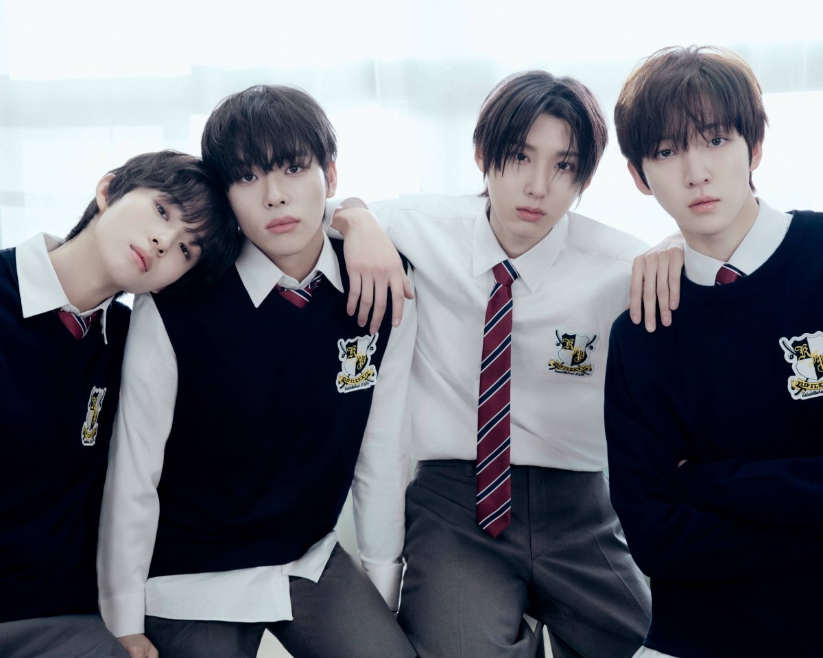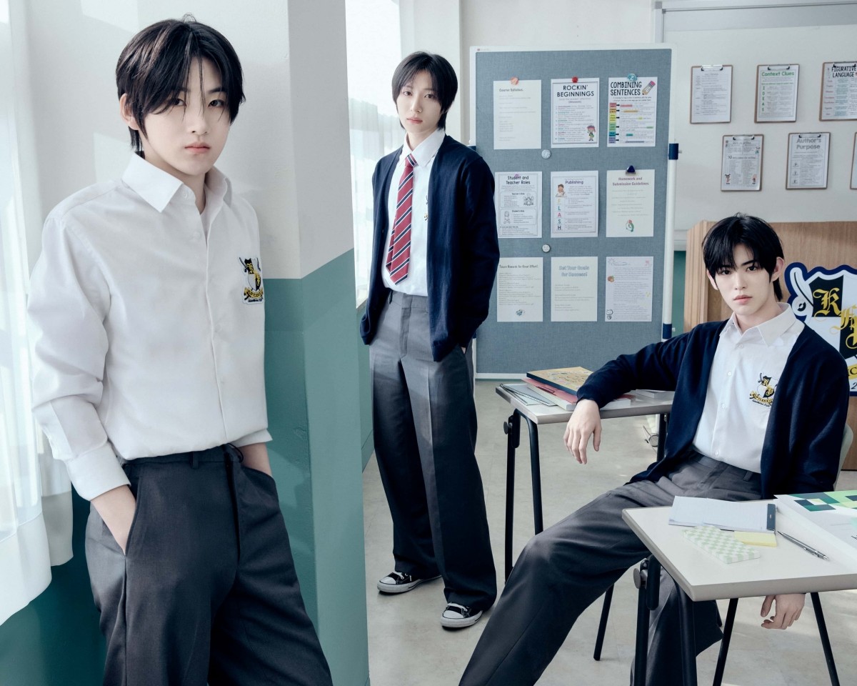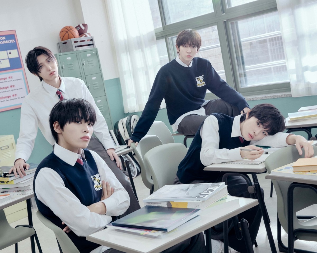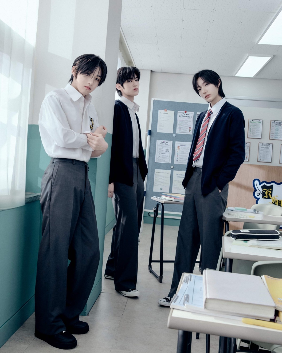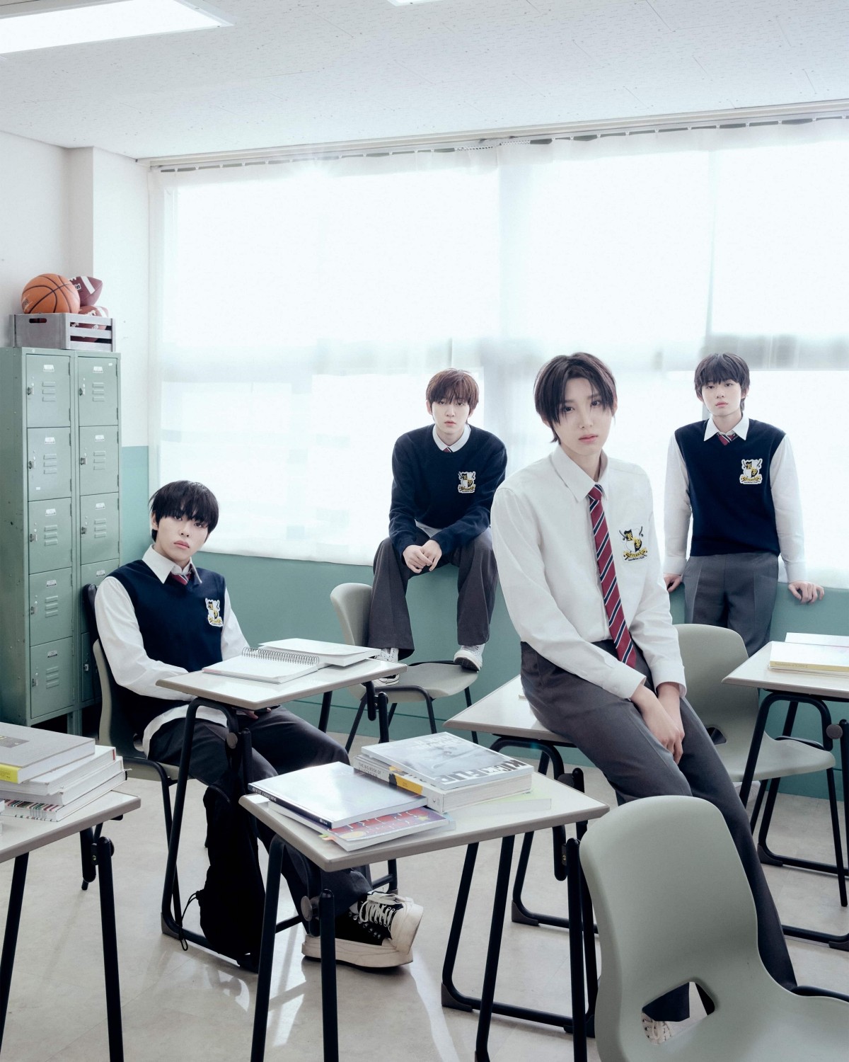7명 멤버들은 단정한 스쿨룩을 소화했다. 교실에 나란히 앉거나 벽에 기대어 포즈를 취했다. 교과서와 필기구 등 다양한 소품들로 하이틴 감성을 완성했다.