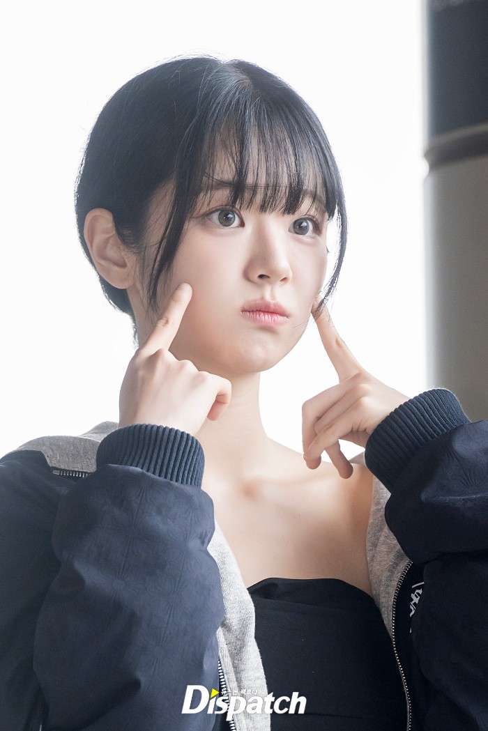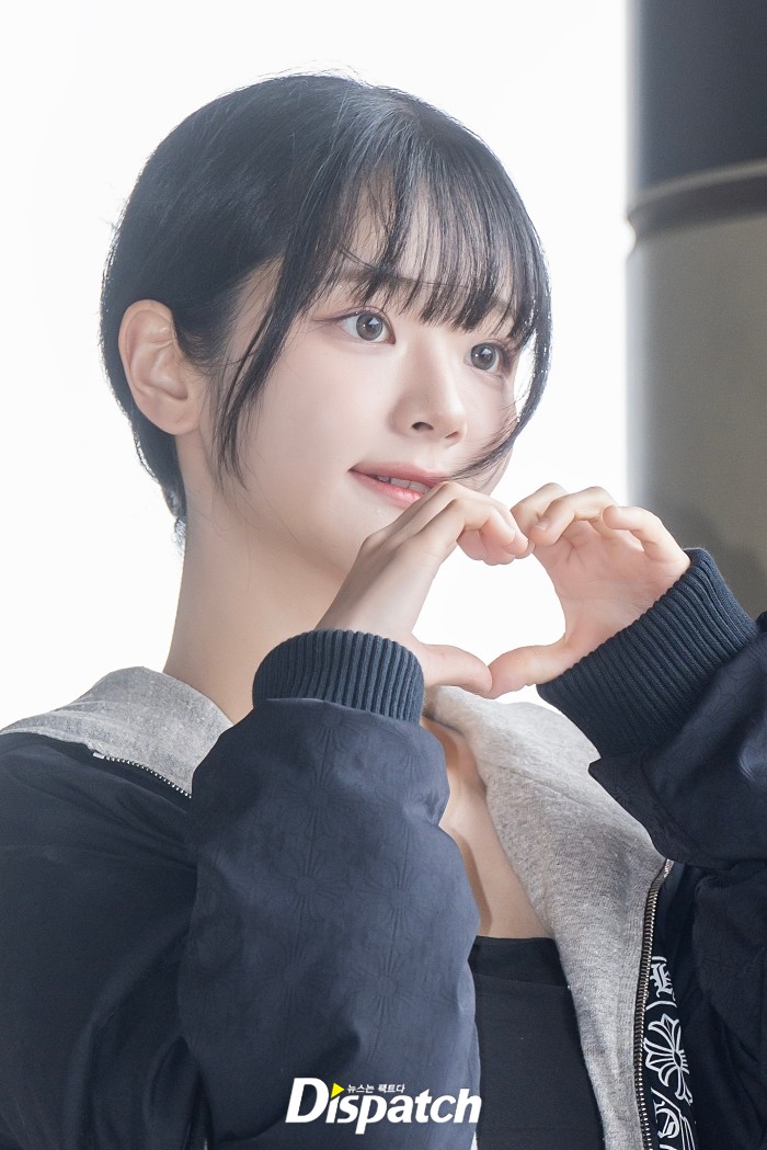 쵸단은 블랙 점퍼와 데님 팬츠로 멋을 냈다. 인형같은 미모가 돋보였다.