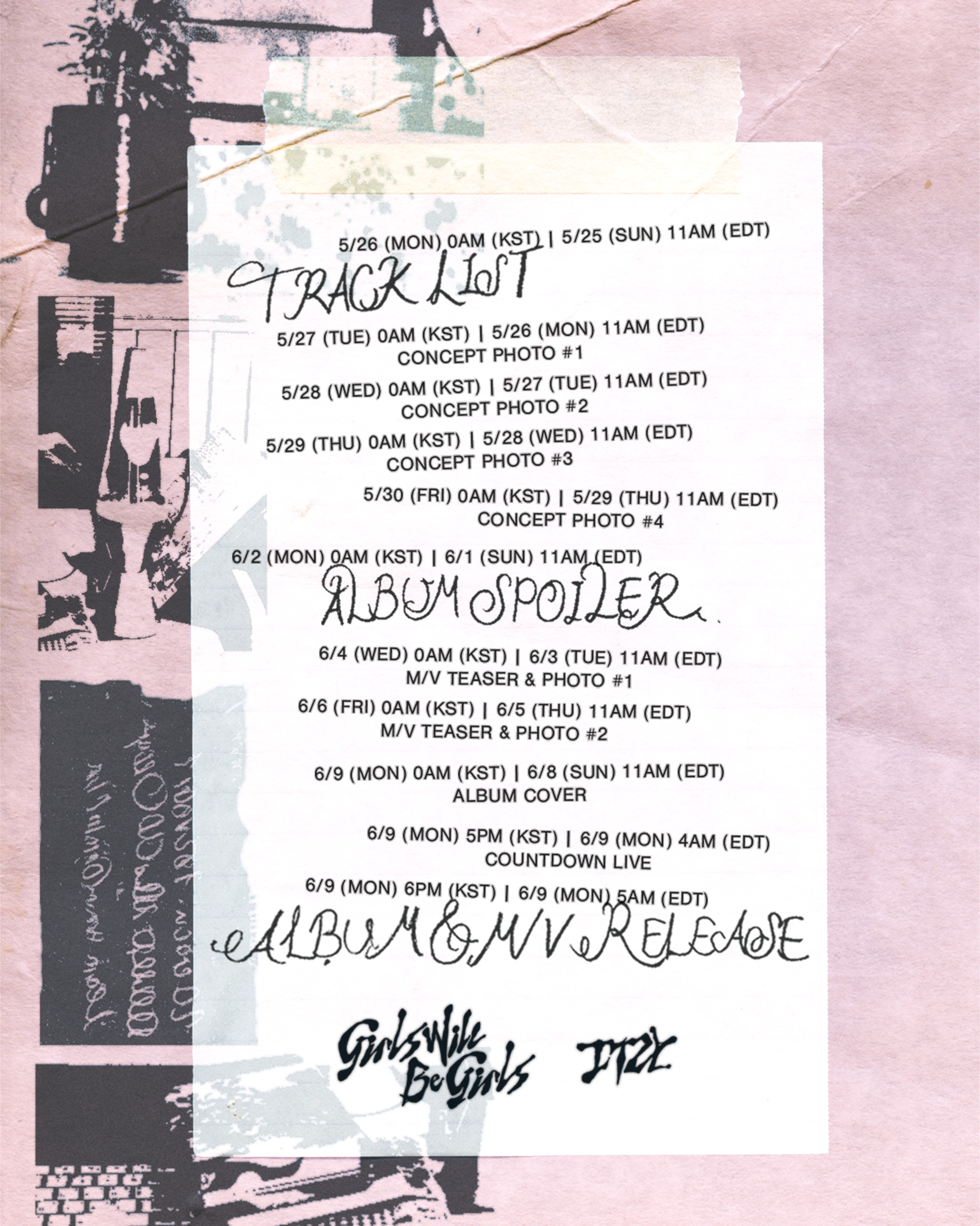 JYP엔터테인먼트는 12일 공식 SNS에 있지 신보 '걸스 윌 비 걸스'(Girls Will Be Gir[ls) 트레일러 영상 및 스케줄러를 올렸다.