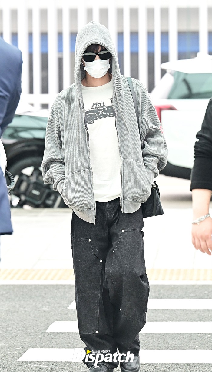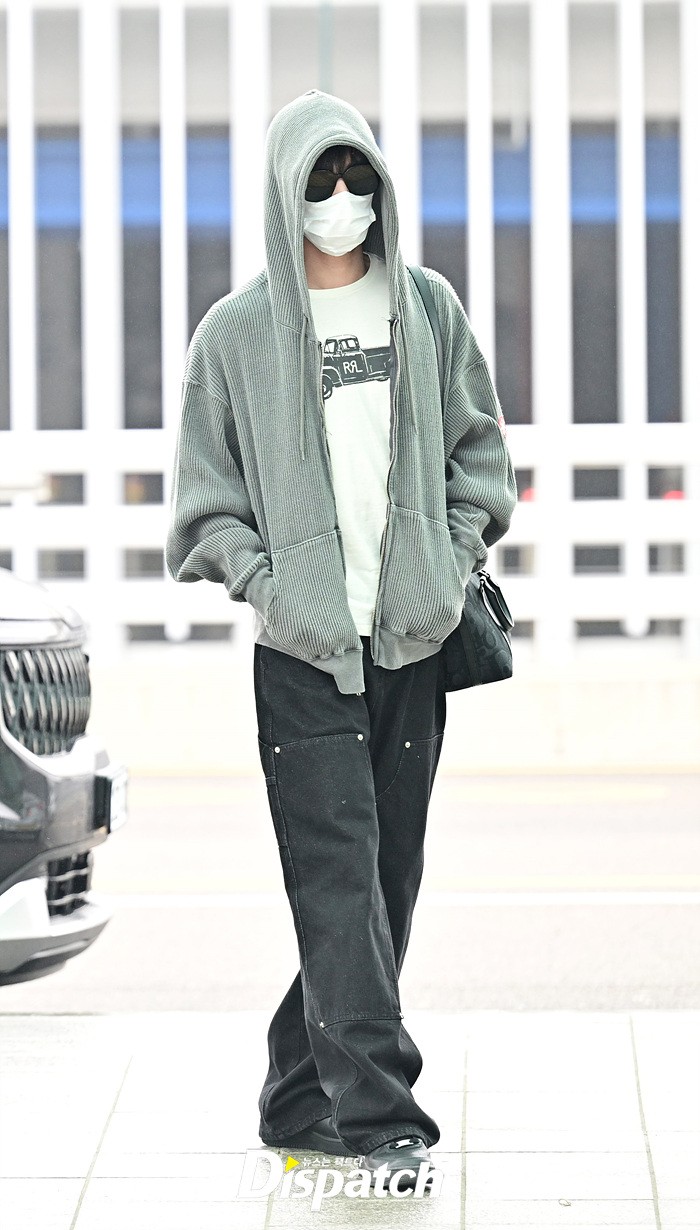 태현은 후드집업과 마스크, 선글라스로 얼굴을 꽁꽁 감쌌다. 이른 아침, 피곤한 기색으로 출국장을 나섰다.