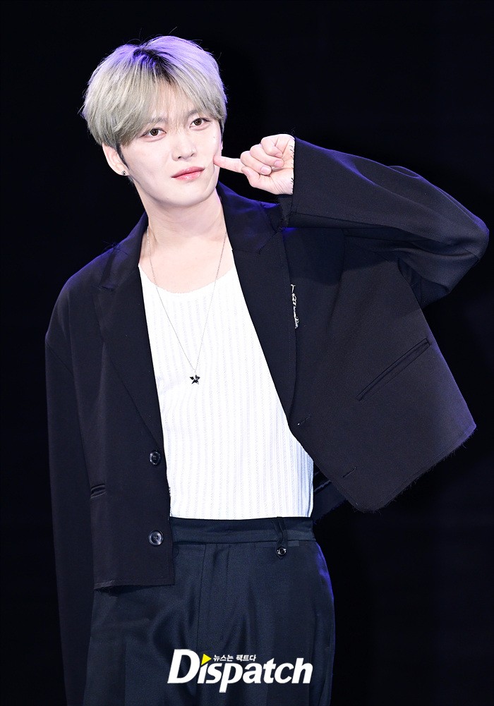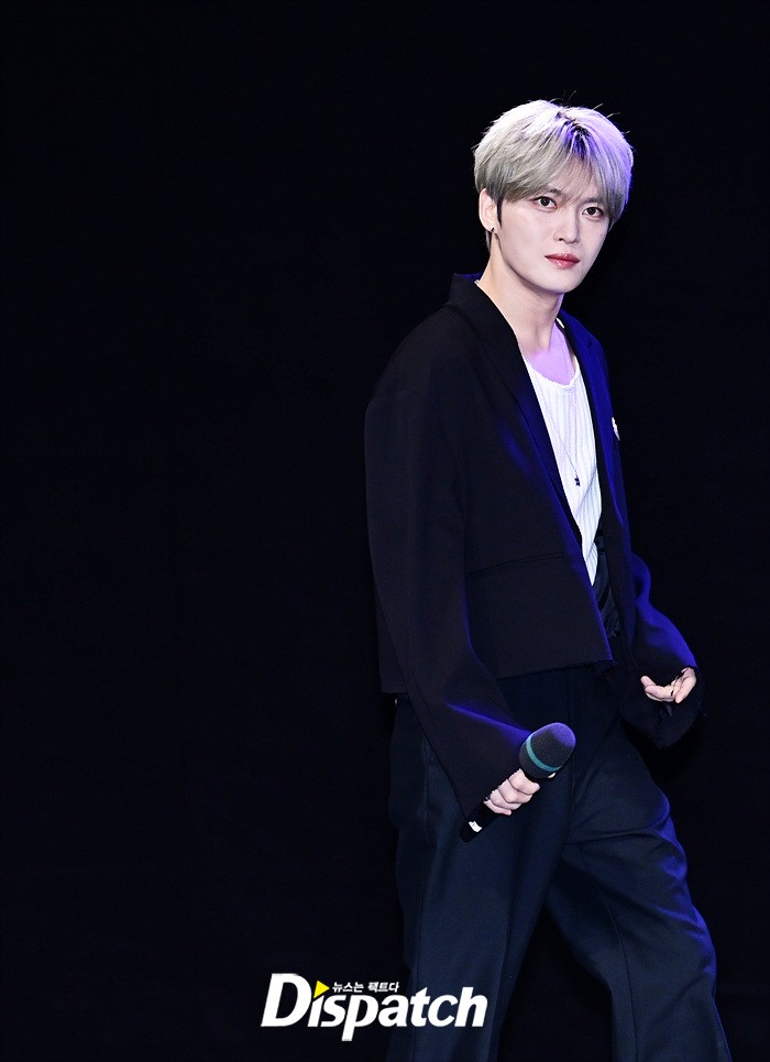 김재중은 화이트 티셔츠와 블랙 재킷, 와이드진으로 깔끔한 스타일링을 연출했다. 조각같은 비주얼과 스윗한 미소도 돋보였다.