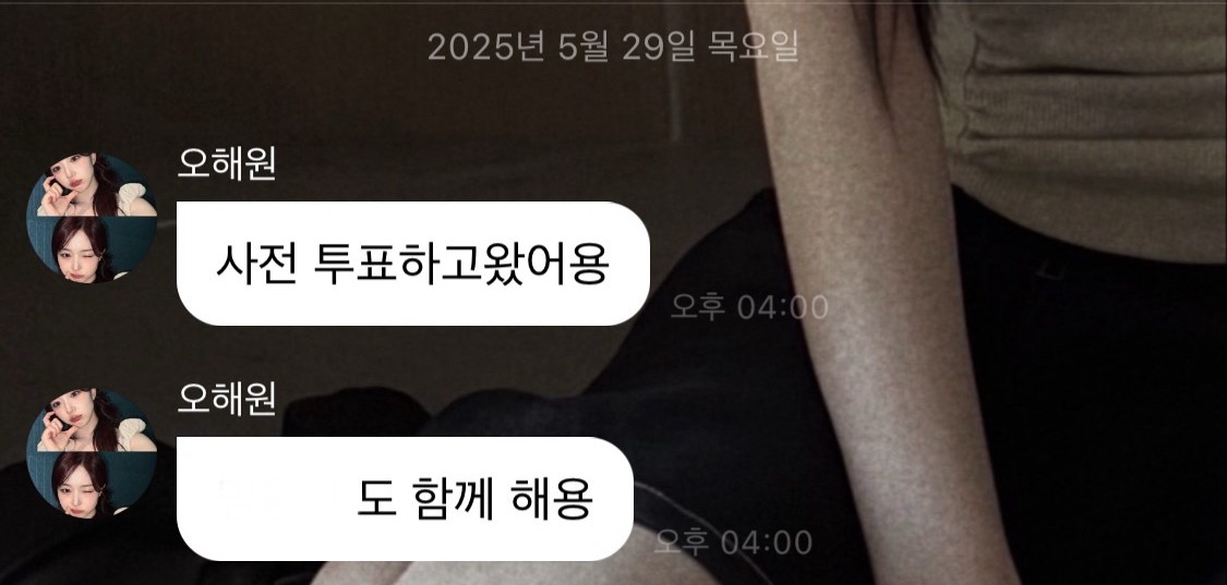 '엔믹스' 해원은 팬 소통앱 '버블'에서 "사전 투표하고 왔다. 함께 하자"고 권유했다. 손등에 투표 도장을 꾹 눌러 찍은 사진도 올렸다.
