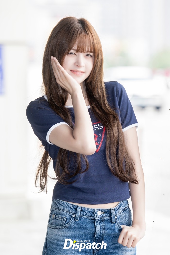 릴리는 네이비 티셔츠와 데님 팬츠로 멋을 냈다. 인형같은 미모가 돋보였다.