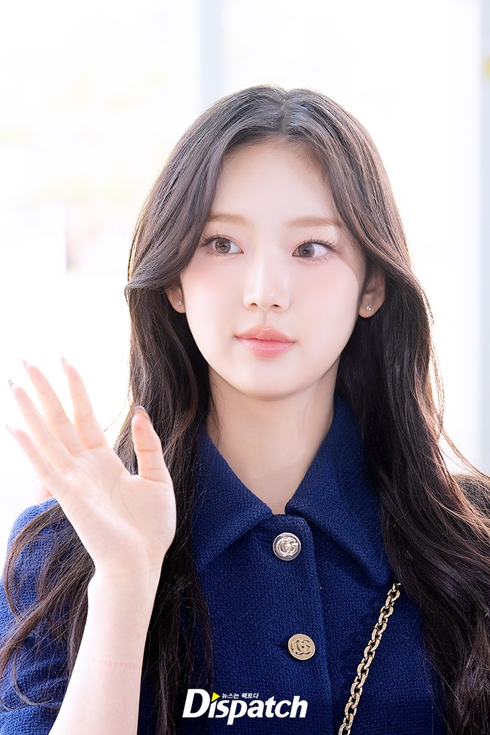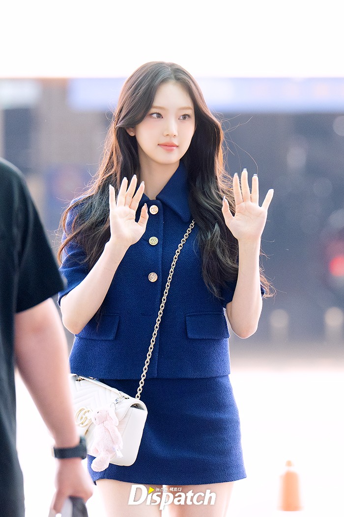 이솔은 네이비 원피스로 러블리한 공항패션을 연출했다. 청순한 미모가 돋보였다.