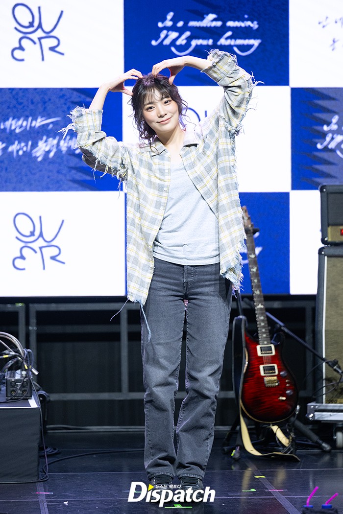 QWER는 이날 타이틀곡 '눈물참기'를 라이브로 선보였다. 서정적이면서도 폭발적 밴드 사운드가 돋보였다. 멤버들은 맑은 목소리로 섬세하게 감정을 전달했다.