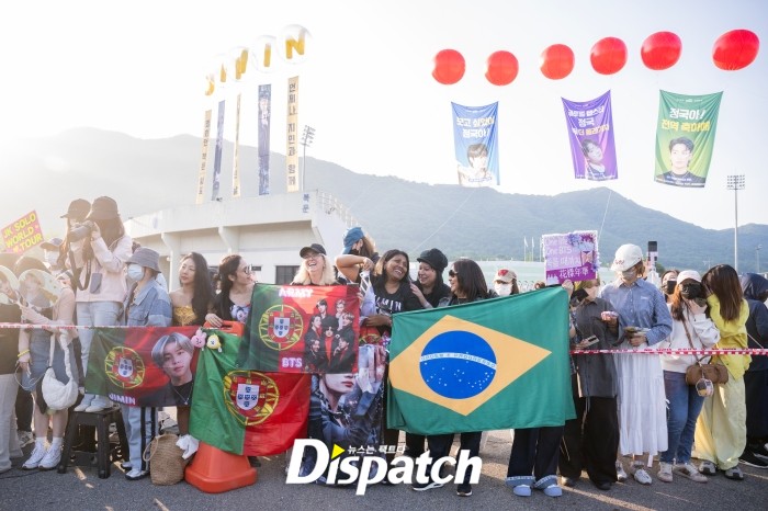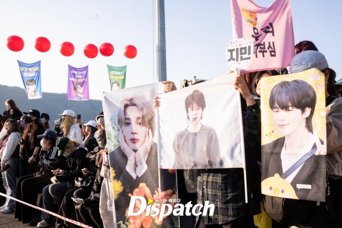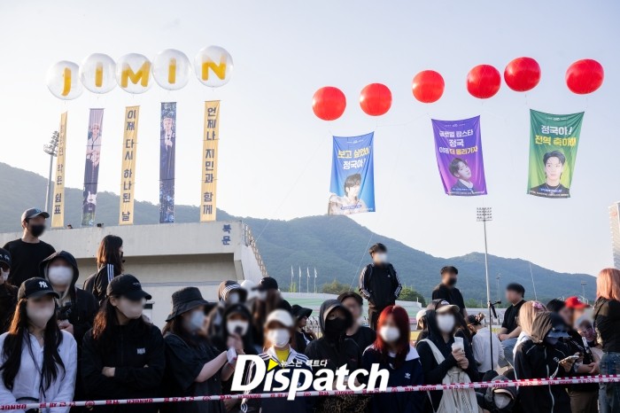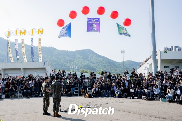 이날 전역식 행사는 200여 명의 국내외 팬들과 함께했다. 하늘에는 헬륨 풍선을 띄웠고, 행사장은 현수막과 플래카드로 가득 메워졌다.