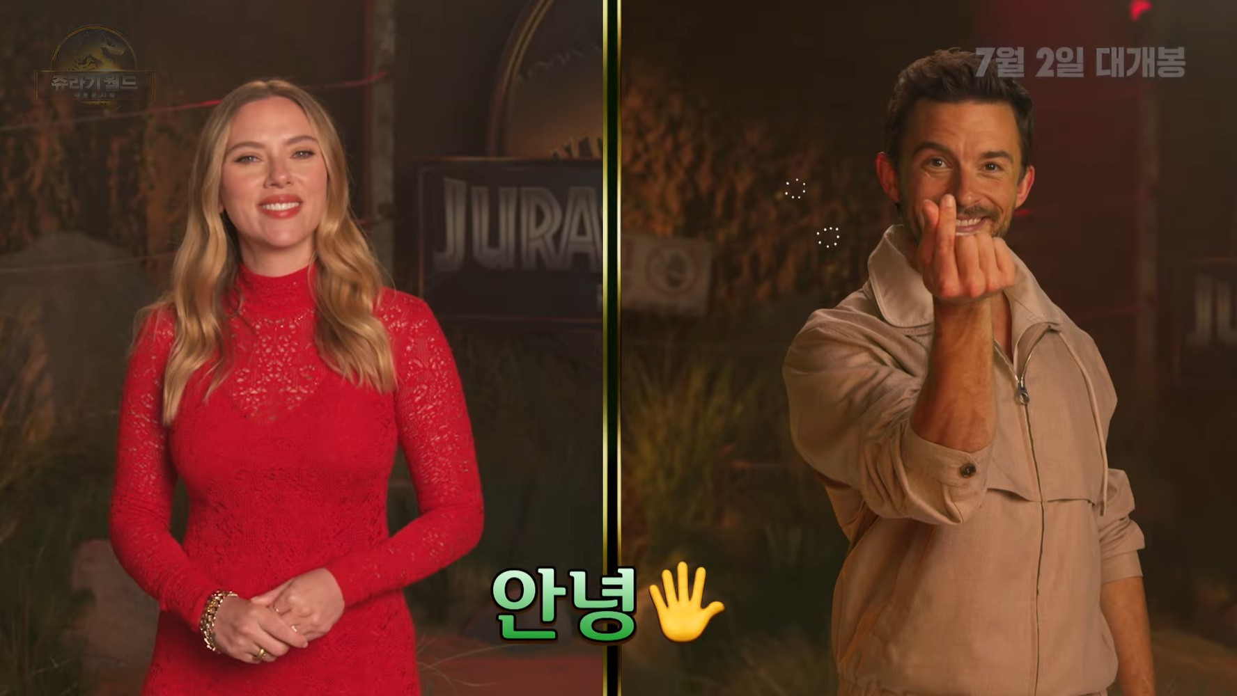 조핸슨은 "서프라이즈가 있다. 멋진 한국 팬들을 만나고 싶어 '쥬라기 월드' 글로벌 투어로 한국에 간다. 7월 1일 한국에서 만나자"고 했다.
